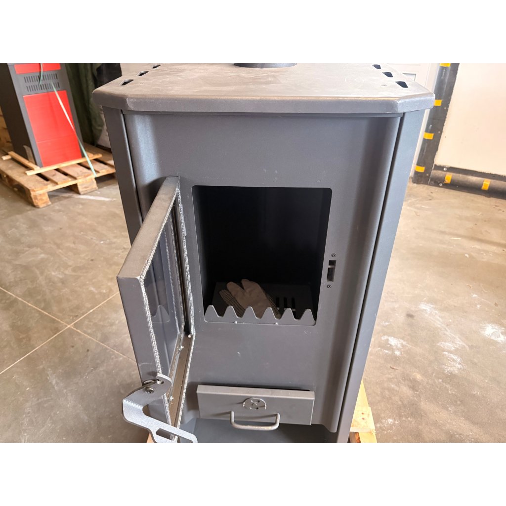 Jedná se o kvalitní krbová kamna vyrobena z ocelového plechu. V kamnech je díky použitému materiálu možné topit dřevem a dřevěnými briketami. Hnědé uhlí výrobce nedoporučuje!!!