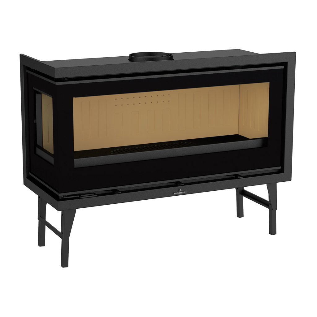 Široká krbová vložka na velká polena vyrobena ve Španělsk od výrobce Bronpi. Je vyrobena z oceli, litiny a vermikulitové výplně ve spalovací komoře.