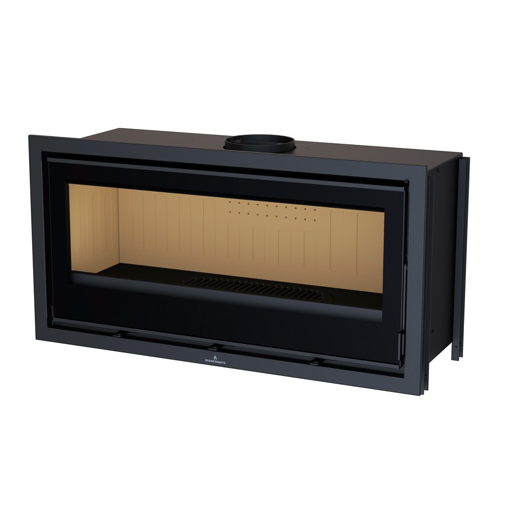 Široká krbová vložka na velká polena vyrobena ve Španělsk od výrobce Bronpi. Je vyrobena z oceli, litiny a vermikulitové výplně ve spalovací komoře.