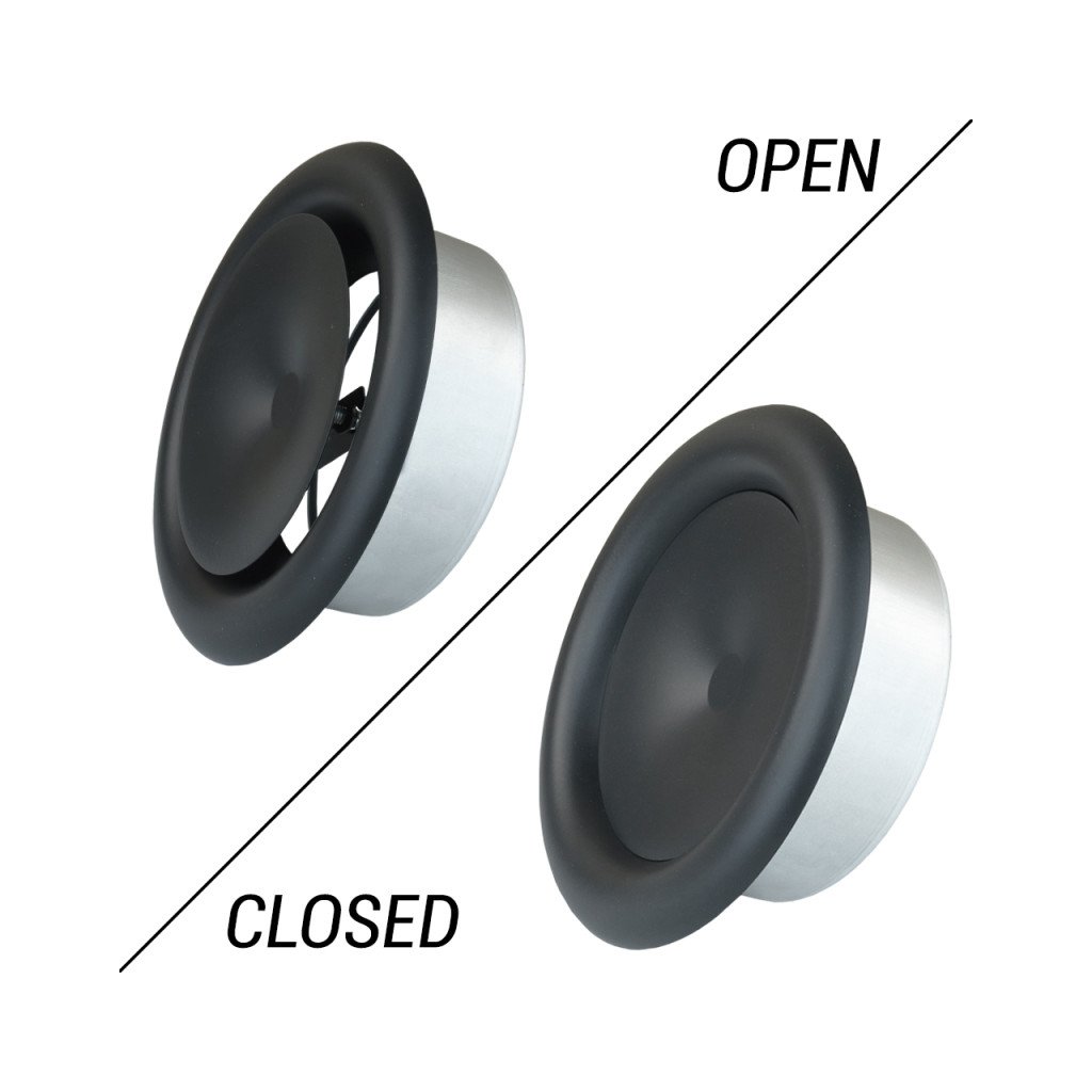 Elegantní černé talířové ventily Dalap TVM jsou určené pro přesnou regulaci proudění vzduchu v domácnostech, komerčních i průmyslových prostorech. Díky aerodynamickému tvaru rovnoměrně rozdělují vzduch a centrálním otočným talířem umožňují plynulé nastavení průtoku – od jemného vyvážení až po plné otevření.