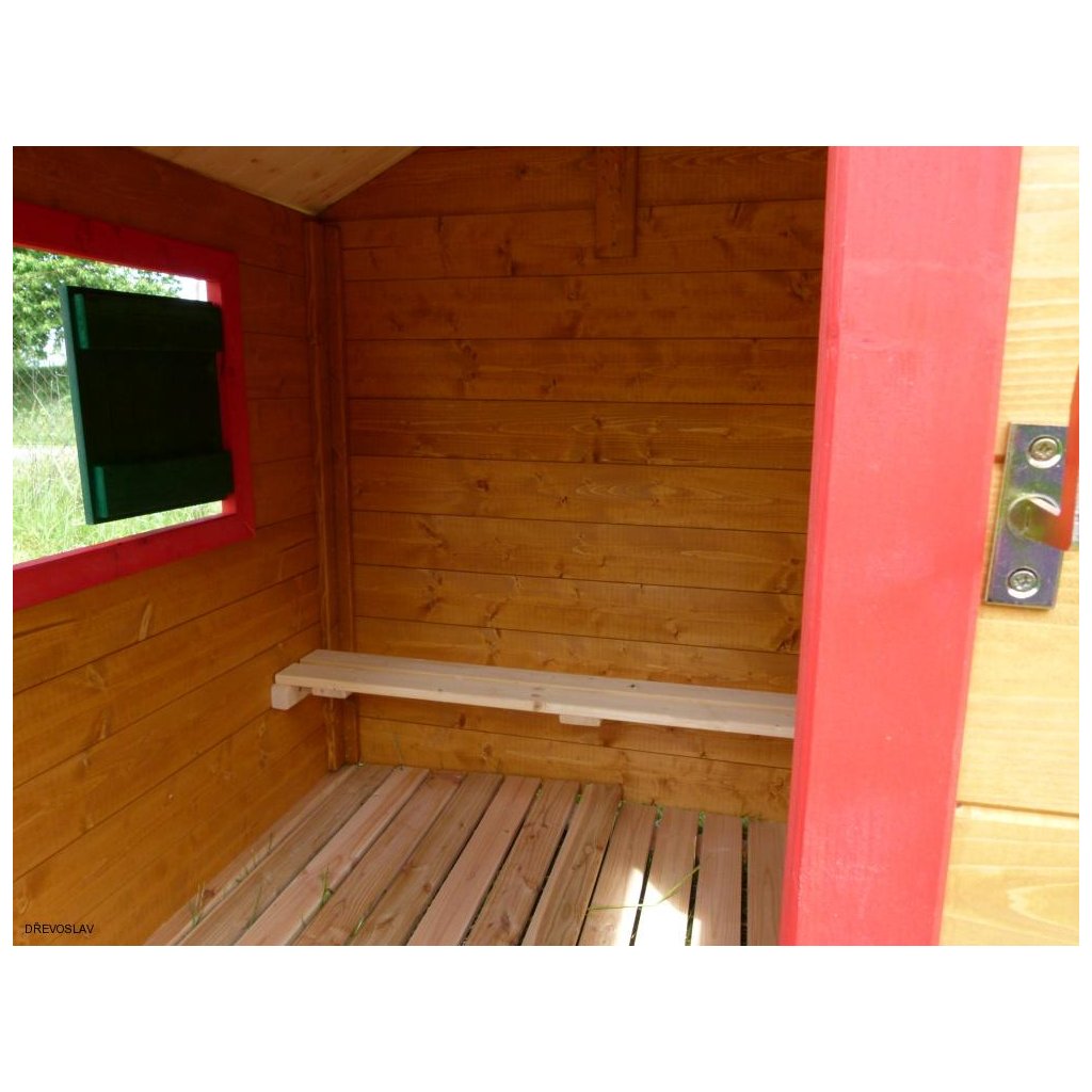 - Povrchová úprava: celý domek včetně vnitřku je natřen pomocí technologie máčení lazuritem (dvakrát) - dokonalá ochrana dřeva