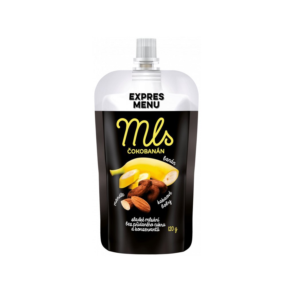 banány (40 %), voda, pražené kakaové boby (10 %), mandle ( 8%), sůl.