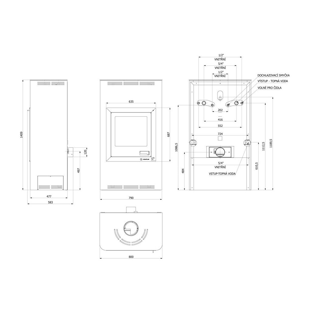 | Rozměr topeniště (Š x V x H): | 500x415x340 mm |