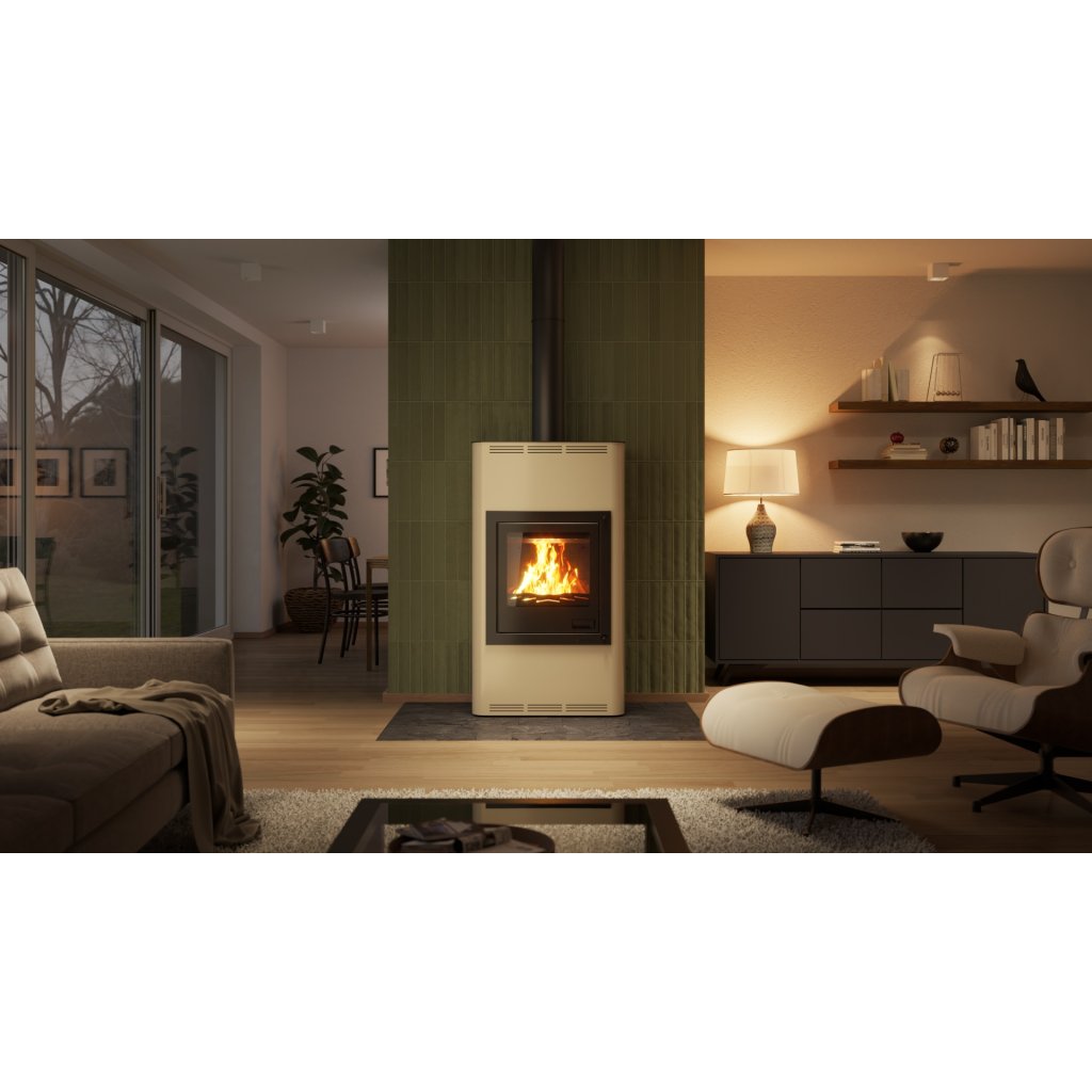 Krbová kamna Aquaflam 17 s výměníkem - creme, základní regulace mají mnoho nadstandardních doplňků, čímž velmi výrazně předhání konkurenční výrobky. Inovativní prvky směřují především ke zlepšení obsluhy krbových kamen. Použitý materiál je pečlivě vybírán tak, aby dosahoval nejvyšší kvality. Pro bezpečnost zákazníka jsou krbová kamna vybavena standardně ochlazovací smyčkou a stále otevřeným terciálním vzduchem, který zabraňuje hromadění plynů ve spalovací komoře. Základní a automatická regulace navíc zavírá přívod vzduchu při přetopení. Krbová kamna AQUAFLAM dosáhly na nejpřísnější evropské normy jako jsou BImSchV – Stufe 2, 15a B-VG, DINplus, Flamme Verte.