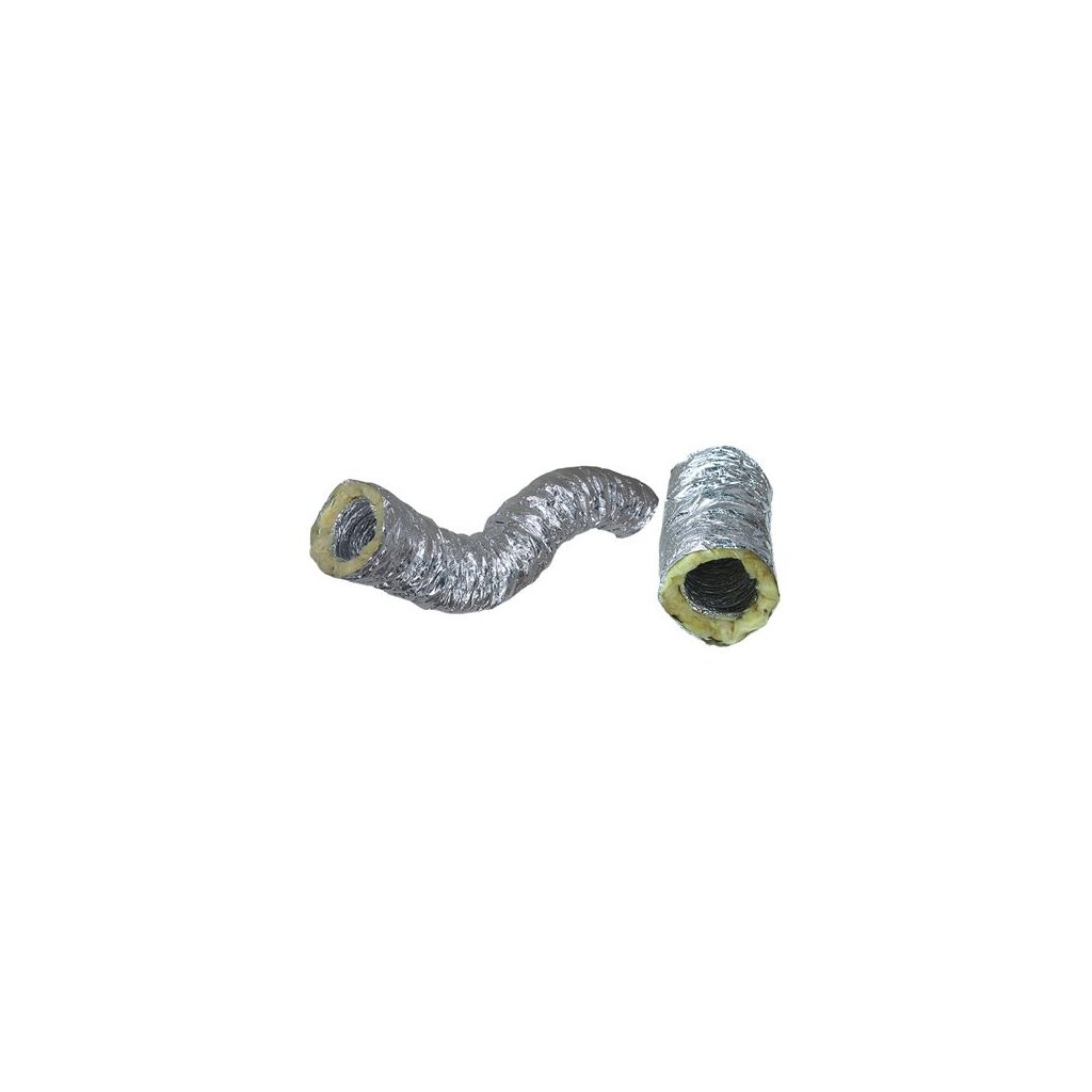 Ohebná Al laminátová hadice s kostrou z ocelového drátuTepelná izolace z vrstvy minerální vaty tloušťky 25 mm, 16 kg/ m3