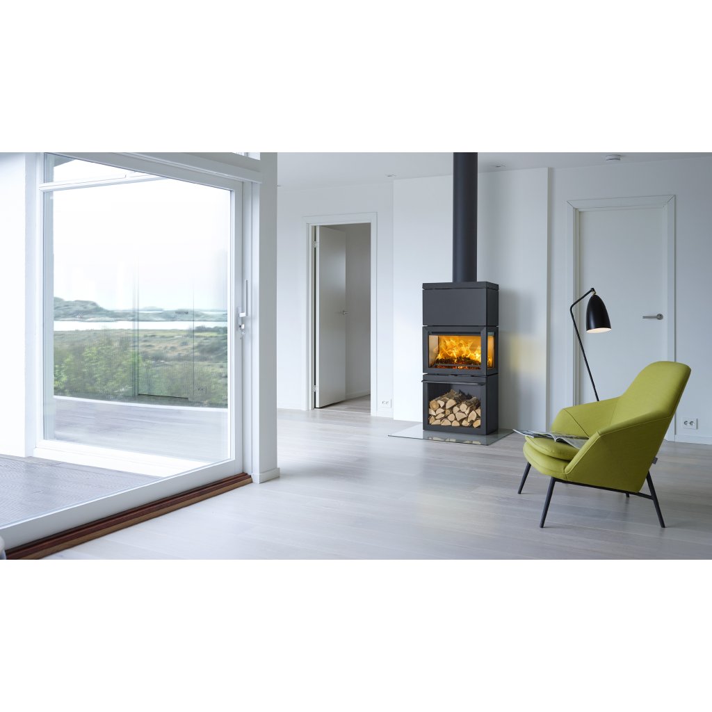 Jaké by to bylo, kdybyste v pohodlí Vašeho obývacího pokoji seděli u táboráku? Krbová kamna Jotul F 520 s panoramatickým výhledem na oheň Vám to umožní zažít. Trojstranné prosklení s širokými bočními skly poskytuje fantastický pohled na plameny, který si můžete vychutnat z mnoha různých úhlů. Sklo je potažené speciálním povrchem, který ho udržuje stále čisté. Chytrá a intuitivní regulace přívodu vzduchu zajišťuje snadné zatápění a ovládání kamen. Díky vnitřnímu obložení topeniště bíle smaltovanými pláty kamna září, i když se v nich zrovna netopí. V jejich podstavci se ukrývá praktický úložný prostor na dřevo. Jotul F 520 High Top jsou vysoká krbová kamna s horním nástavcem, který lze instalovat s akumulačními prstenci (příslušenství na objednávku). Akumulační prstence během topení ukládají teplo, které postupně uvolňují do místnosti až dalších 12 hodin poté, co oheň v kamnech dohoří.