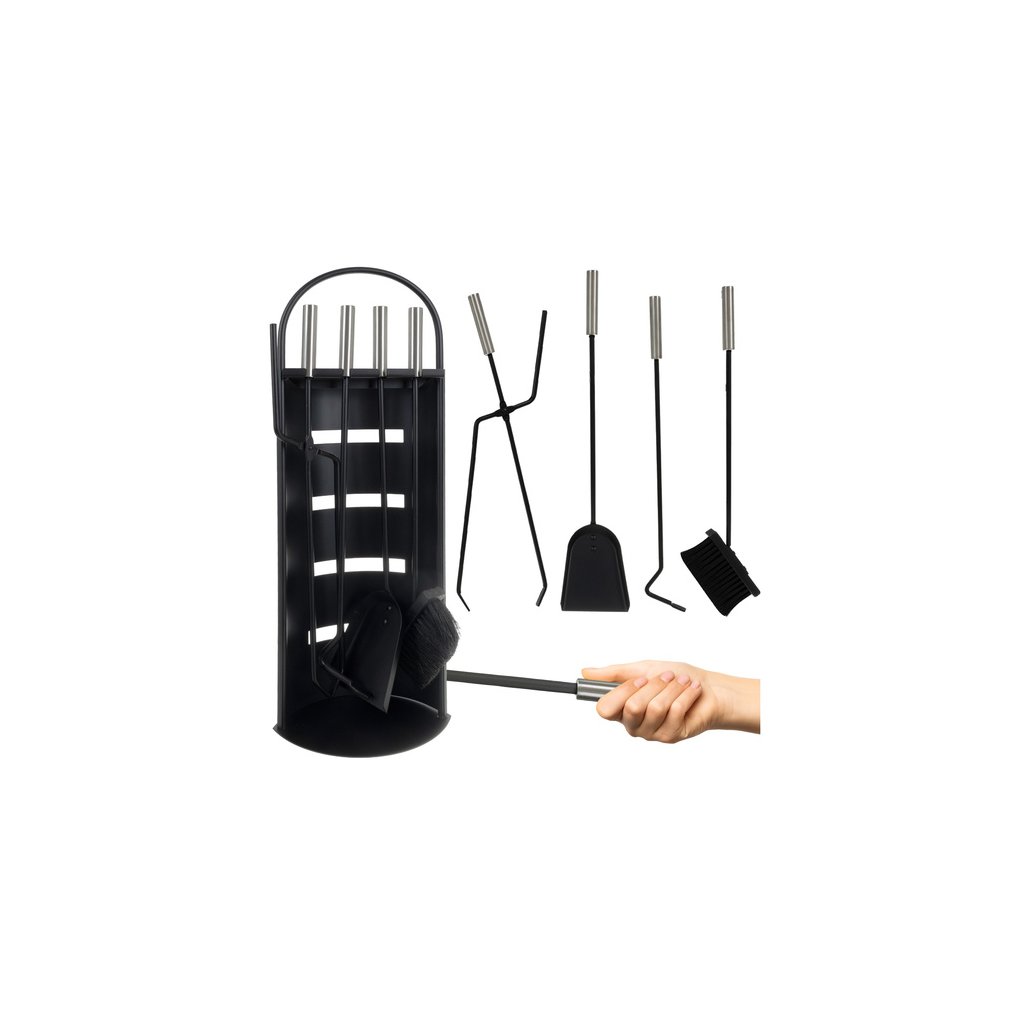 - Kompletní sada 5v1 – kleště, lopatka, smetáček, pohrabáč a stojan na jednom místě