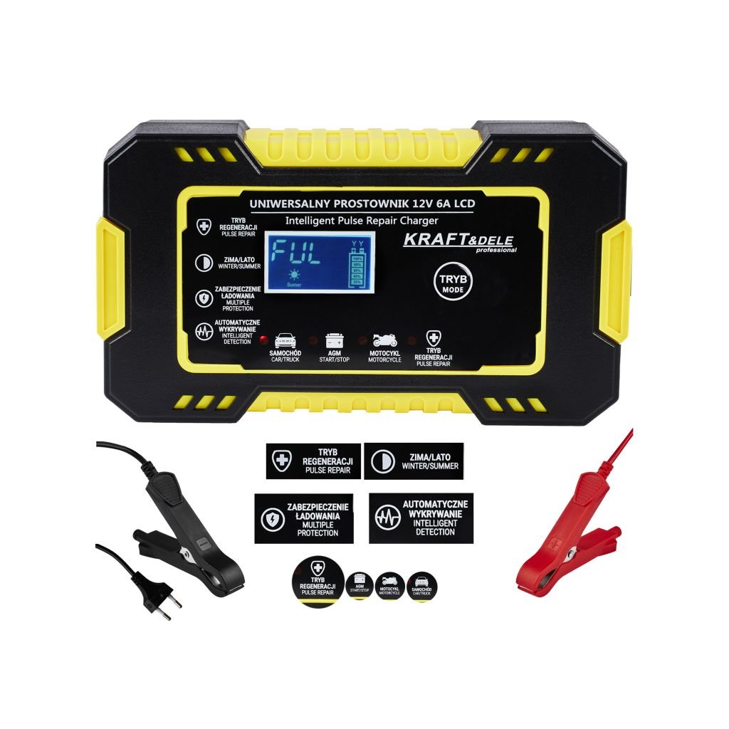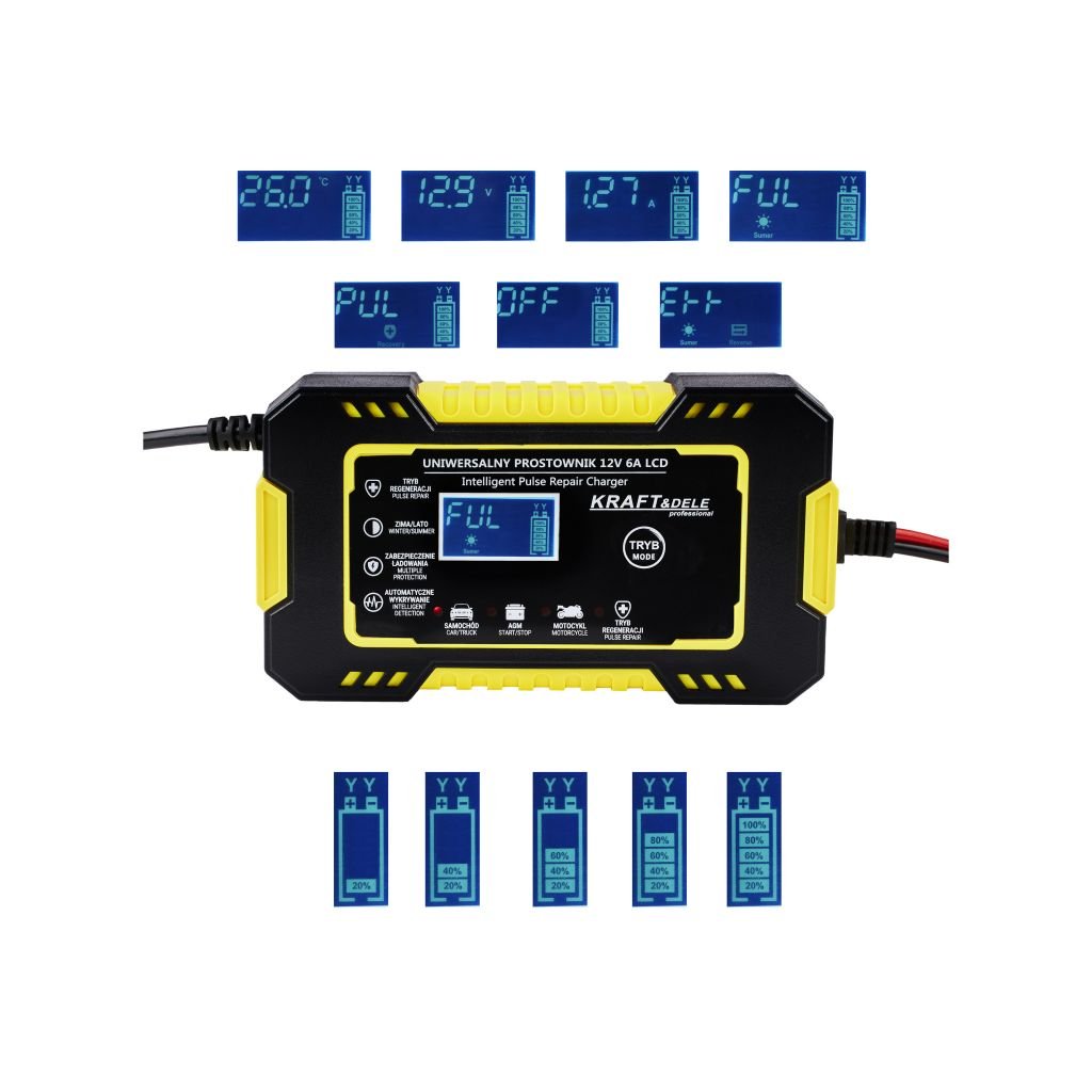 Kraft&Dele automatická nabíječka baterií 12V/6A KD1290 + LCD displej