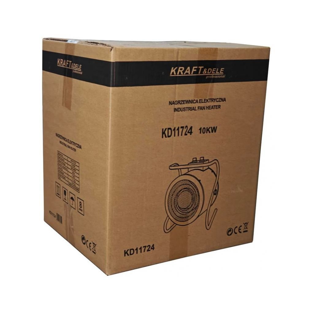 Elektrický ohřívač o výkonu 10 KW od firmy Kraft & Dele se označením KD11724. Jedná se o zařízení vyrobené ze speciálního kompozitu mědi s nerezovou ocelí, díky kterému dokonale přenáší teplo. Ventilátor vytlačuje velkou dávku ohřátého vzduchu a zajišťuje cirkulaci teplého vzduchu v místnosti.