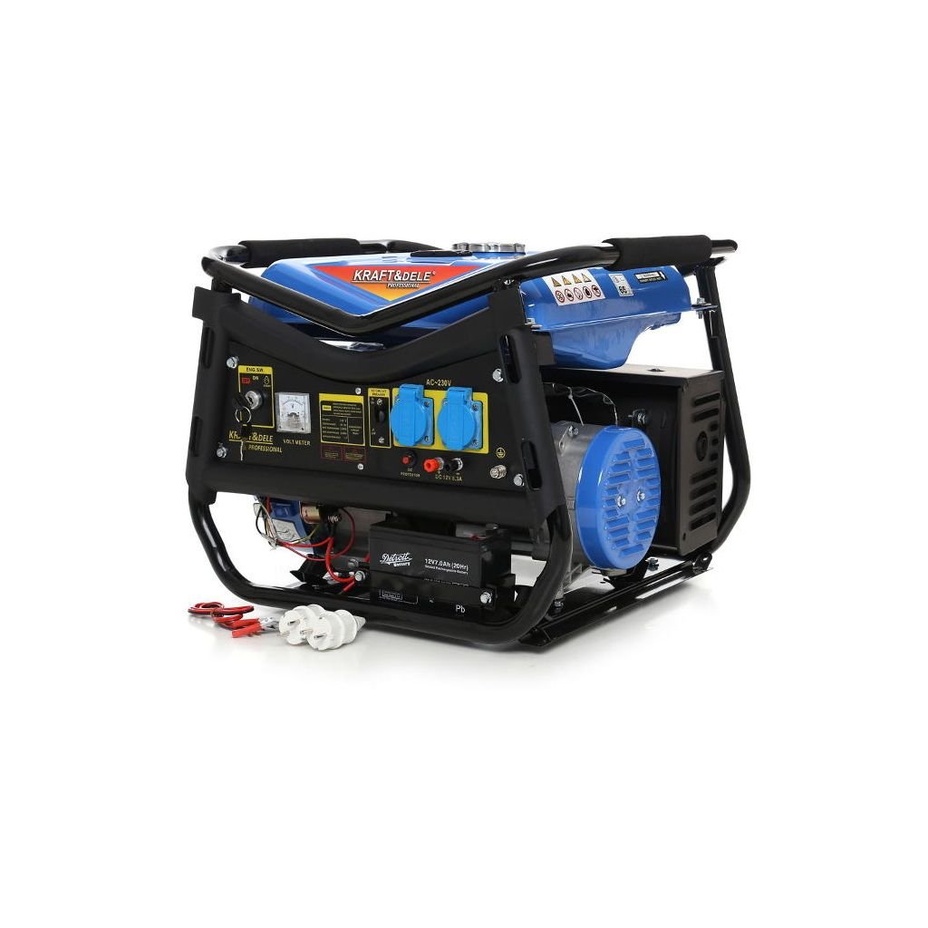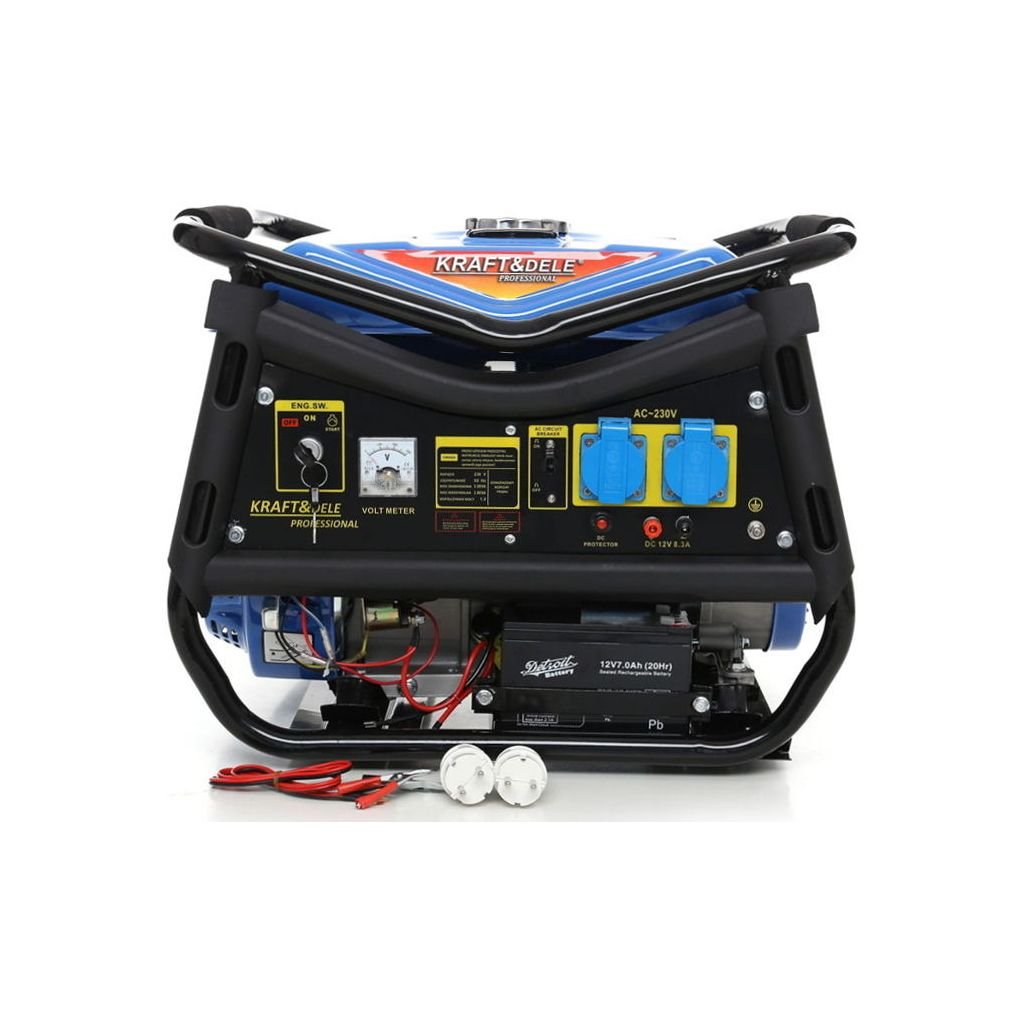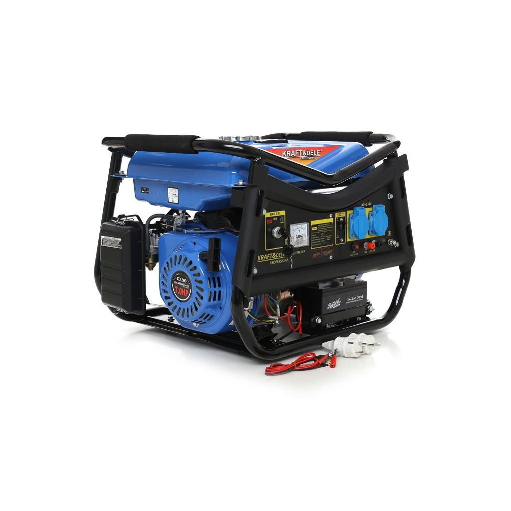 Přenosná jednofázová elektrocentrála s označením KD143 od firmy Kraft & Dele je určena k výrobě střídavého proudu 220V-230V pomocí japonského OHV 4-taktního spalovacího motoru s výkonem 7HP a maximálním výkonem elektrocentrály 3000W.