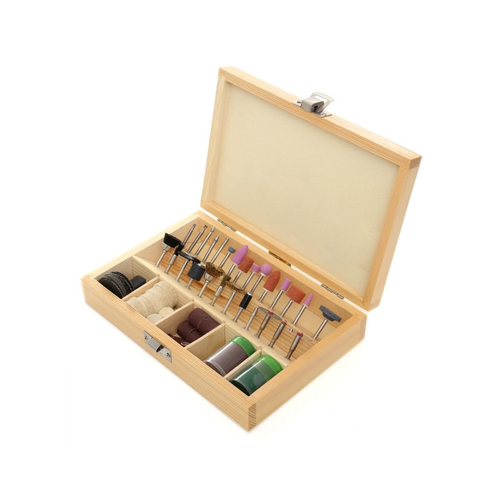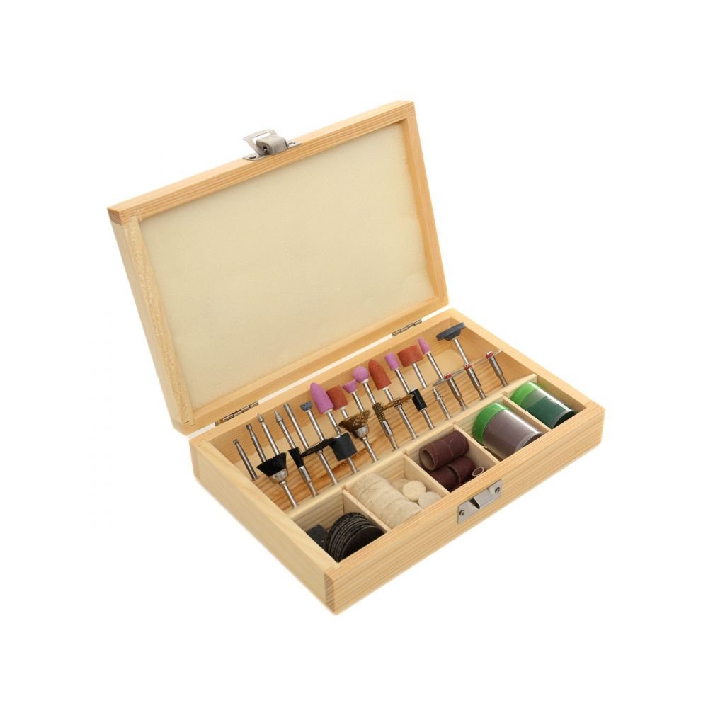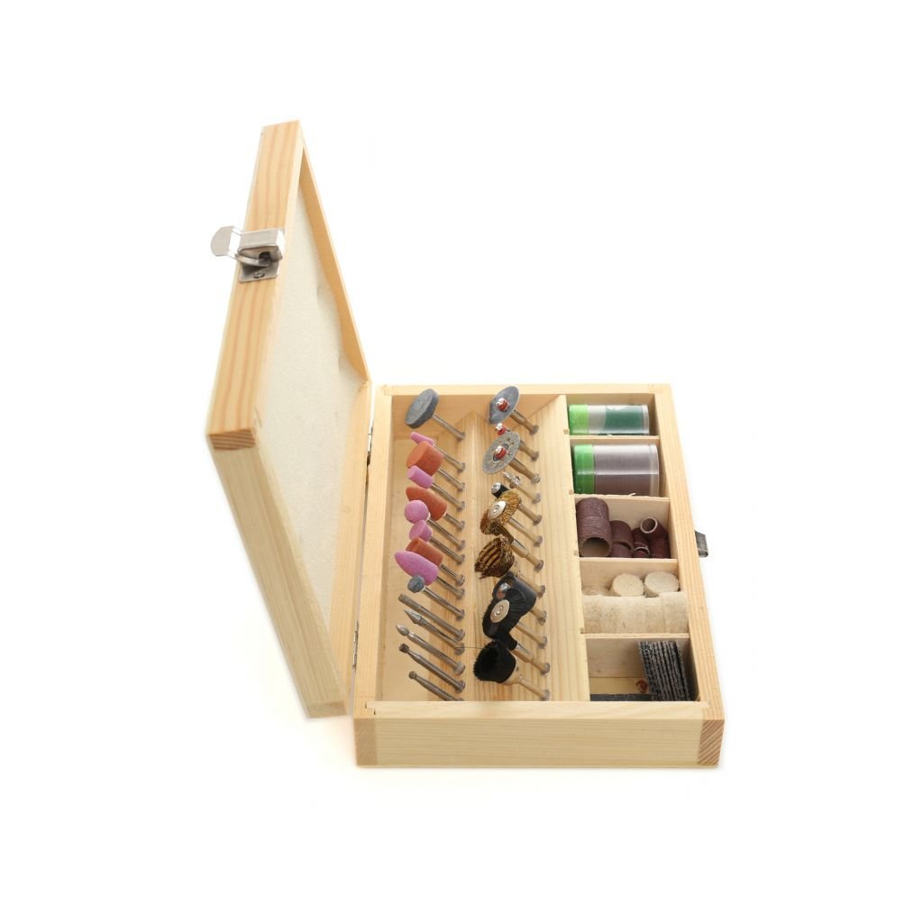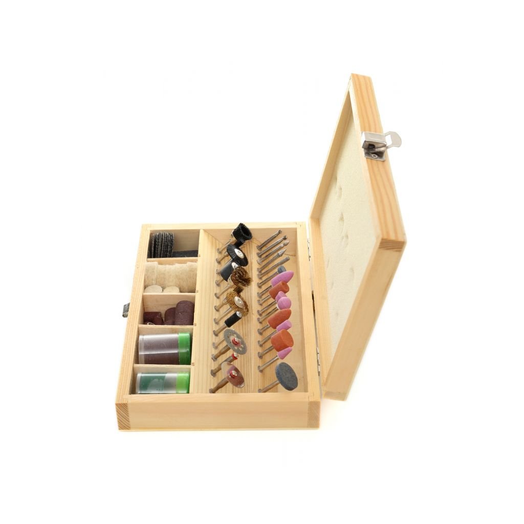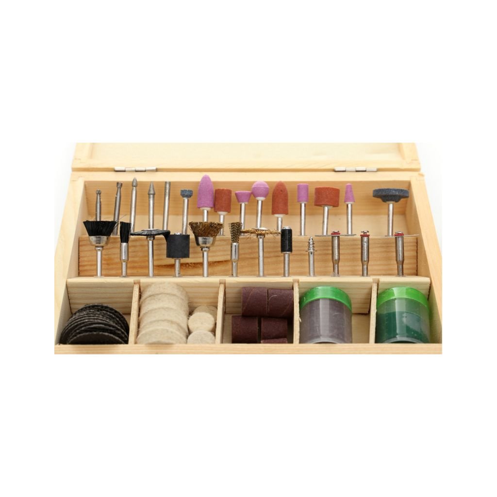 Univerzální sada příslušenství pro mini brusku je sada skládající se ze 100 kusů příslušenství pro různé účely.