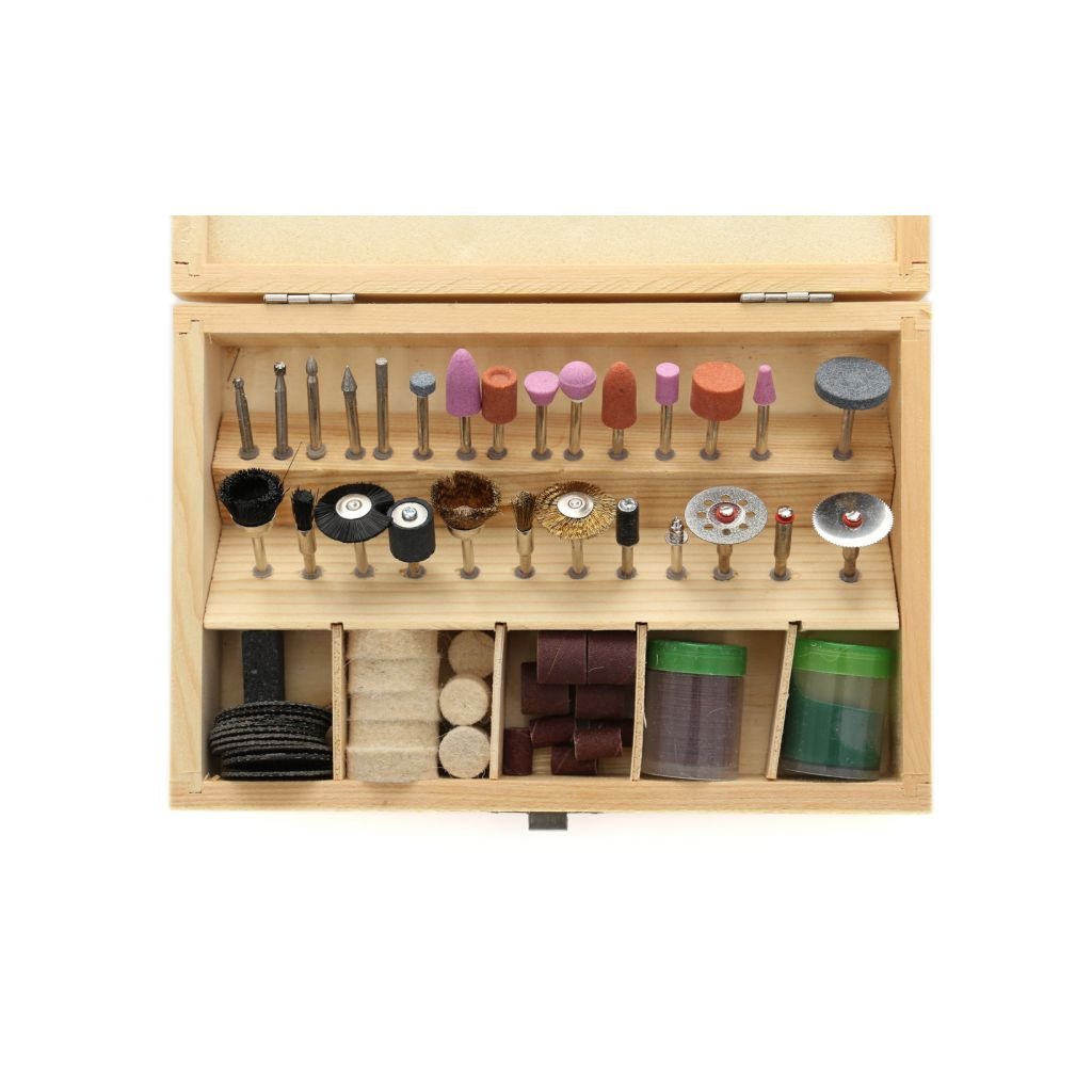Sada obsahuje příslušenství, které vám umožní provádět činnosti, jako jsou: řezbářství, gravírování, broušení, ostření, čištění, leštění, řezání a mnoho dalších.
