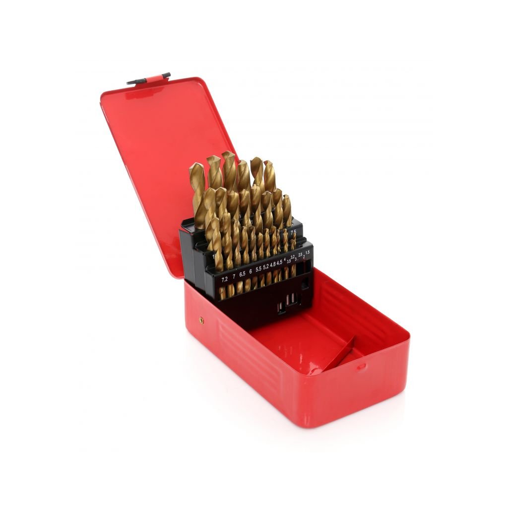 Titanové vrtáky do kovu – sada 29 ks KD10344 od značky Kraft&Dele jsou navrženy pro přesné a efektivní vrtání do různých materiálů, včetně oceli, litiny, neželezných kovů a plastů. Díky titanovému povlaku nabízejí vyšší odolnost a delší životnost ve srovnání s běžnými vrtáky.