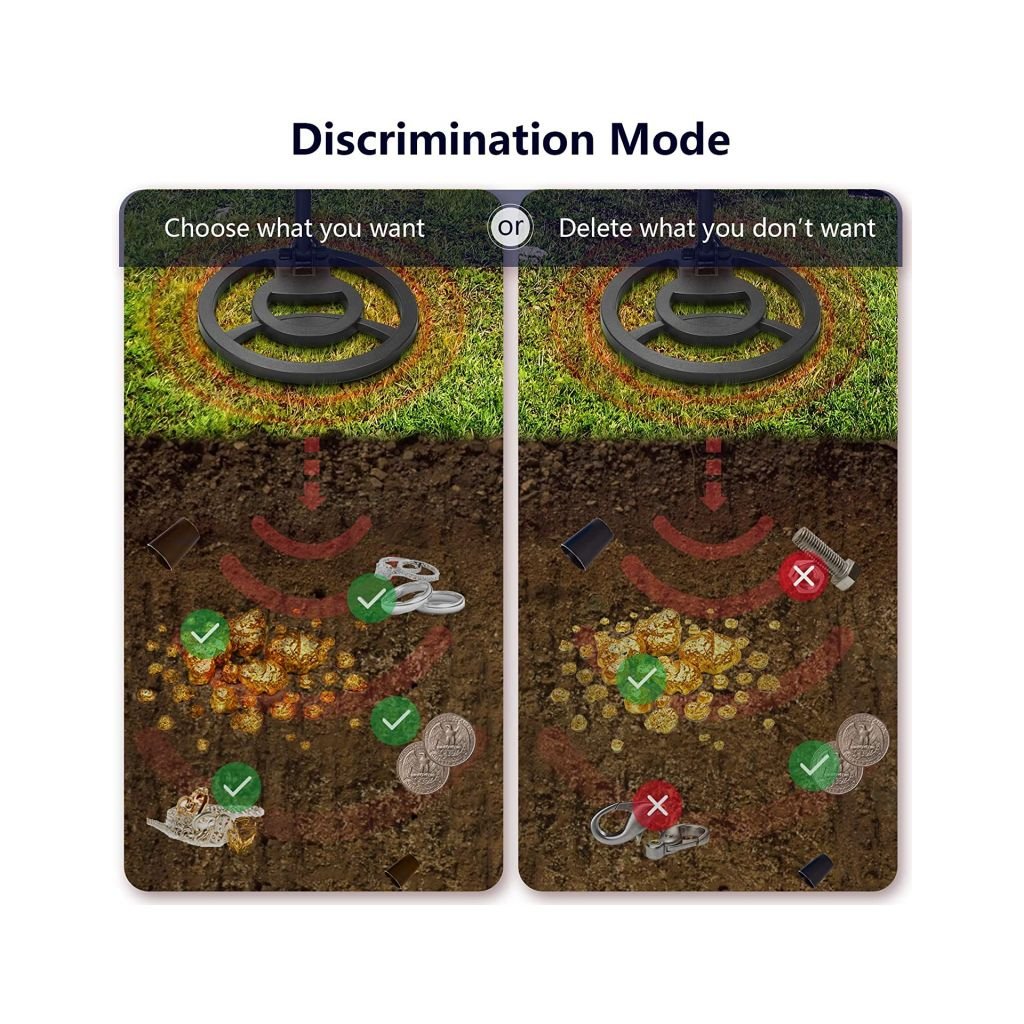 - tato funkce umožňuje detektoru rozlišovat typy kovů a přesně rozlišovat mezi železnými a neželeznými kovy (zlato, stříbro, měď, hliník, zinek, olovo, platina)