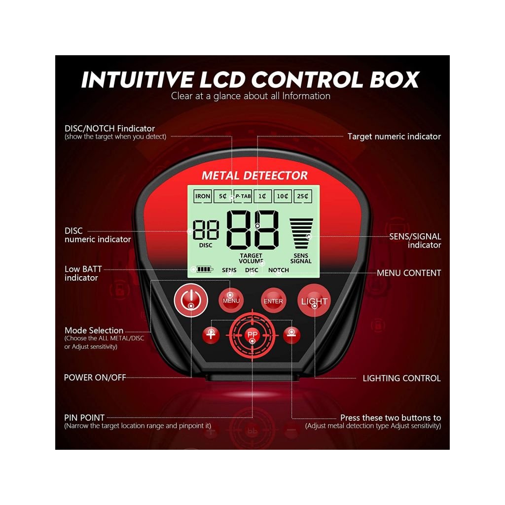 - pokud je detekován kov, je tato informace přenášena zvukovým signálem na přesném a čitelném digitálním indikátoru