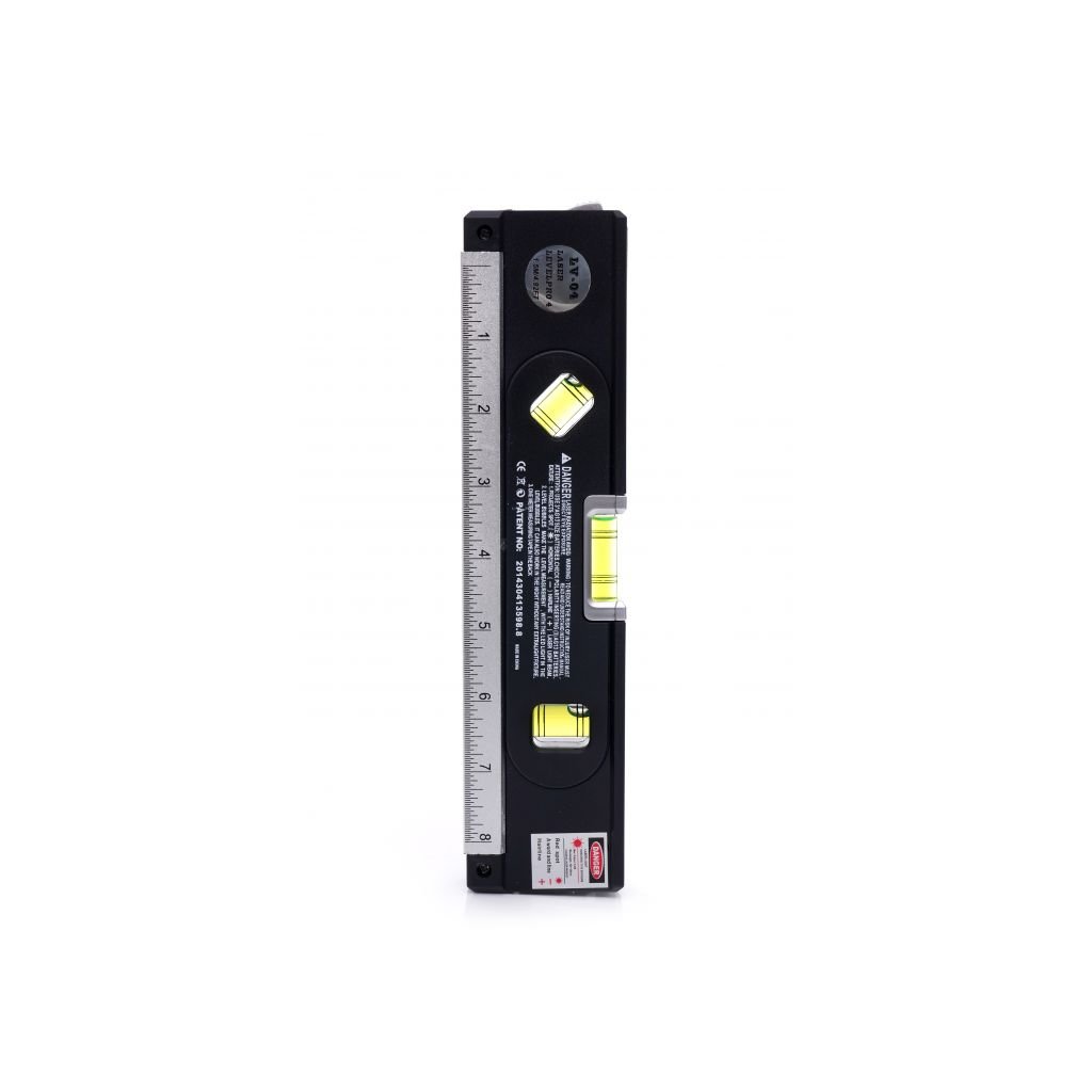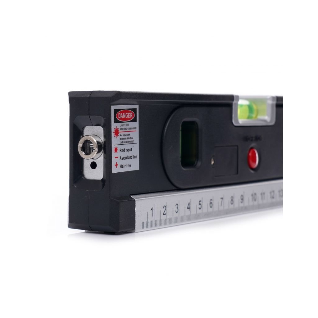 - Usnadňuje měření a vyrovnávání díky kombinaci laseru a metru.