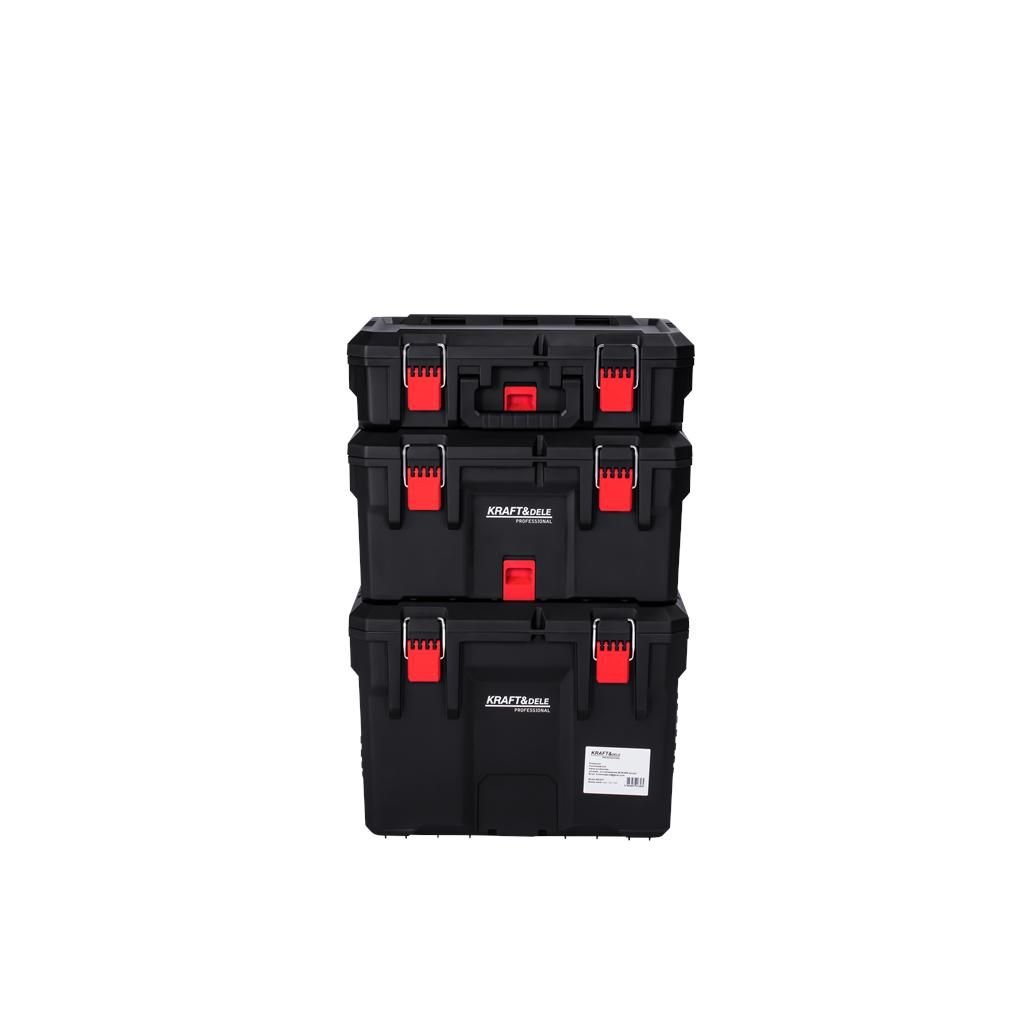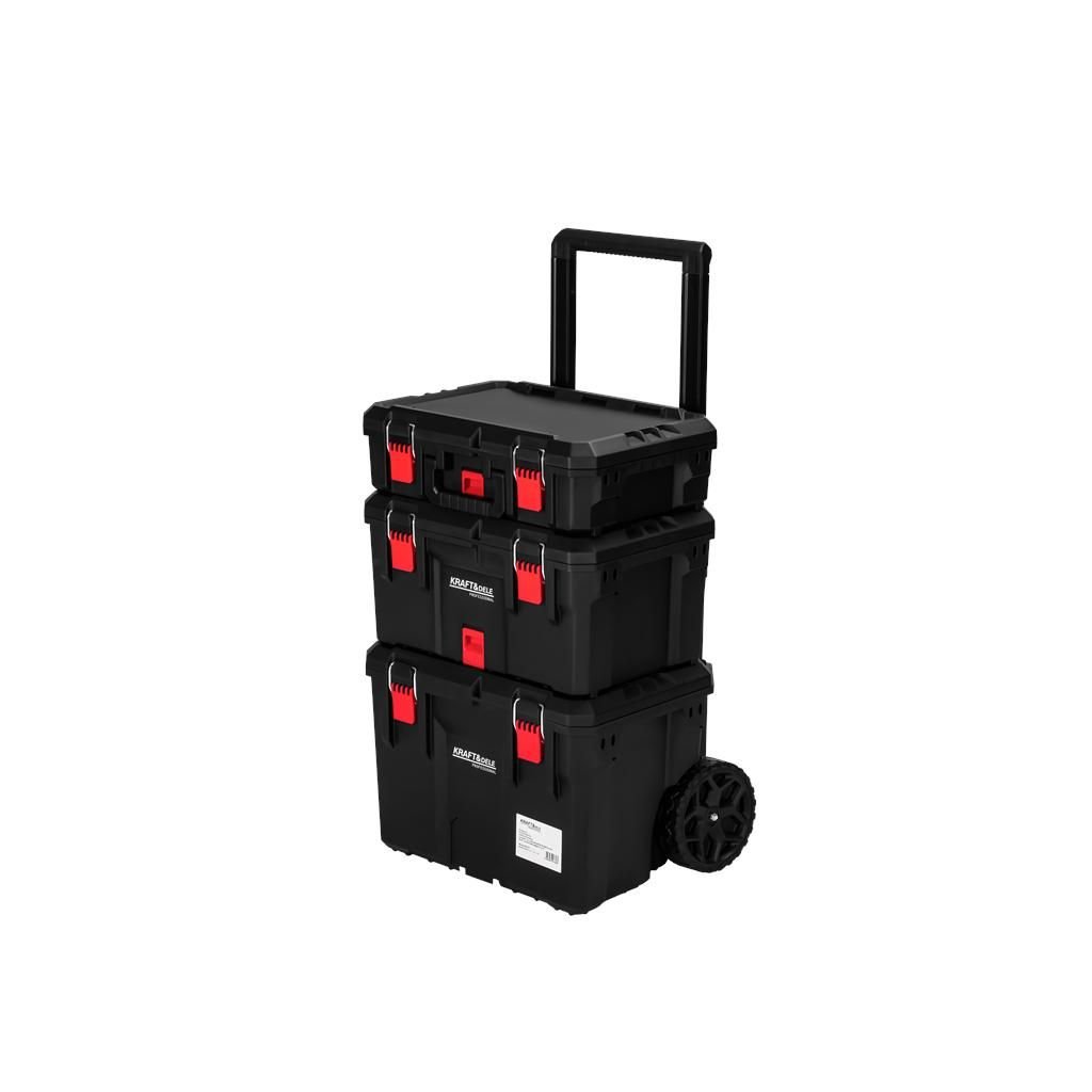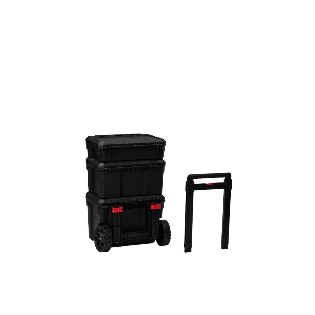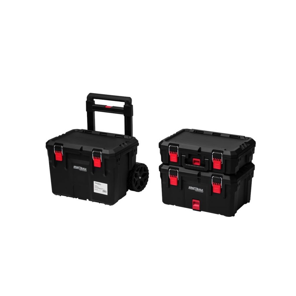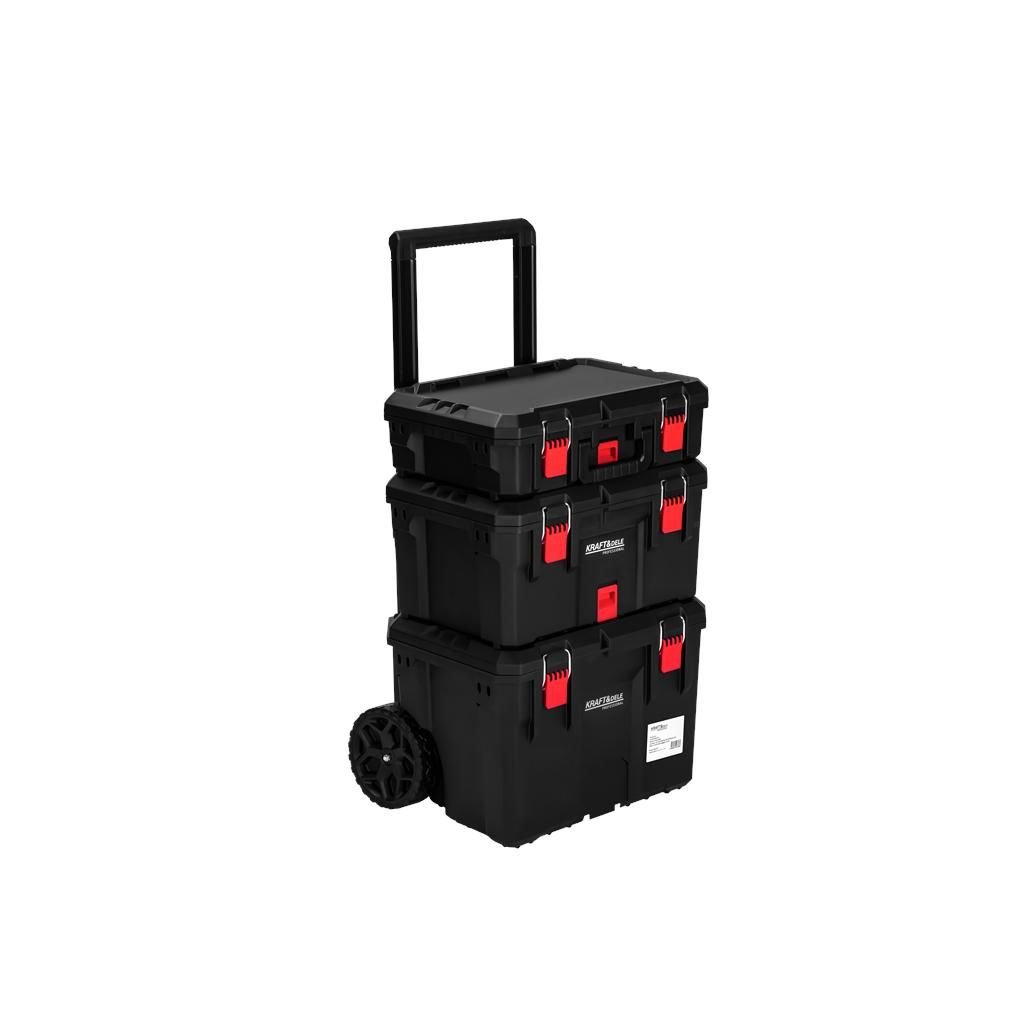 Praktický a mobilní vozík na nářadí KD1077 se třemi prostornými boxy je ideální pro přehledné uložení a snadný transport nářadí, příslušenství a spojovacího materiálu. Modulární systém umožňuje používat boxy společně jako jednu sestavu nebo samostatně. Odolná konstrukce s kovovými prvky, zesílené uzávěry, transportní kolečka a teleskopická rukojeť zajišťují spolehlivost a pohodlnou manipulaci i při plném zatížení.