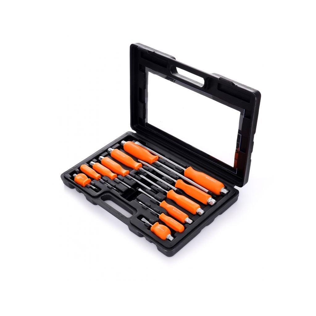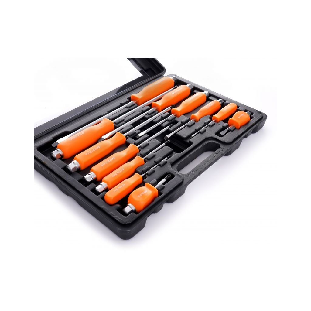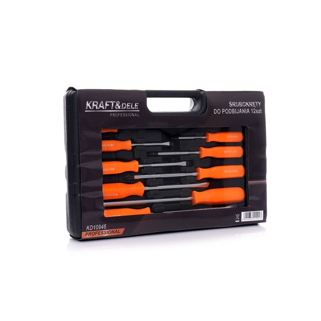Kraft&Dele KD10946 sada úderových šroubováků 12 ks od značky Kraft&Dele je určena pro profesionální použití v automobilovém a průmyslovém sektoru. Díky průchozímu dříku a zesíleným rukojetím umožňuje efektivní přenos síly při šroubování i podbíjení.