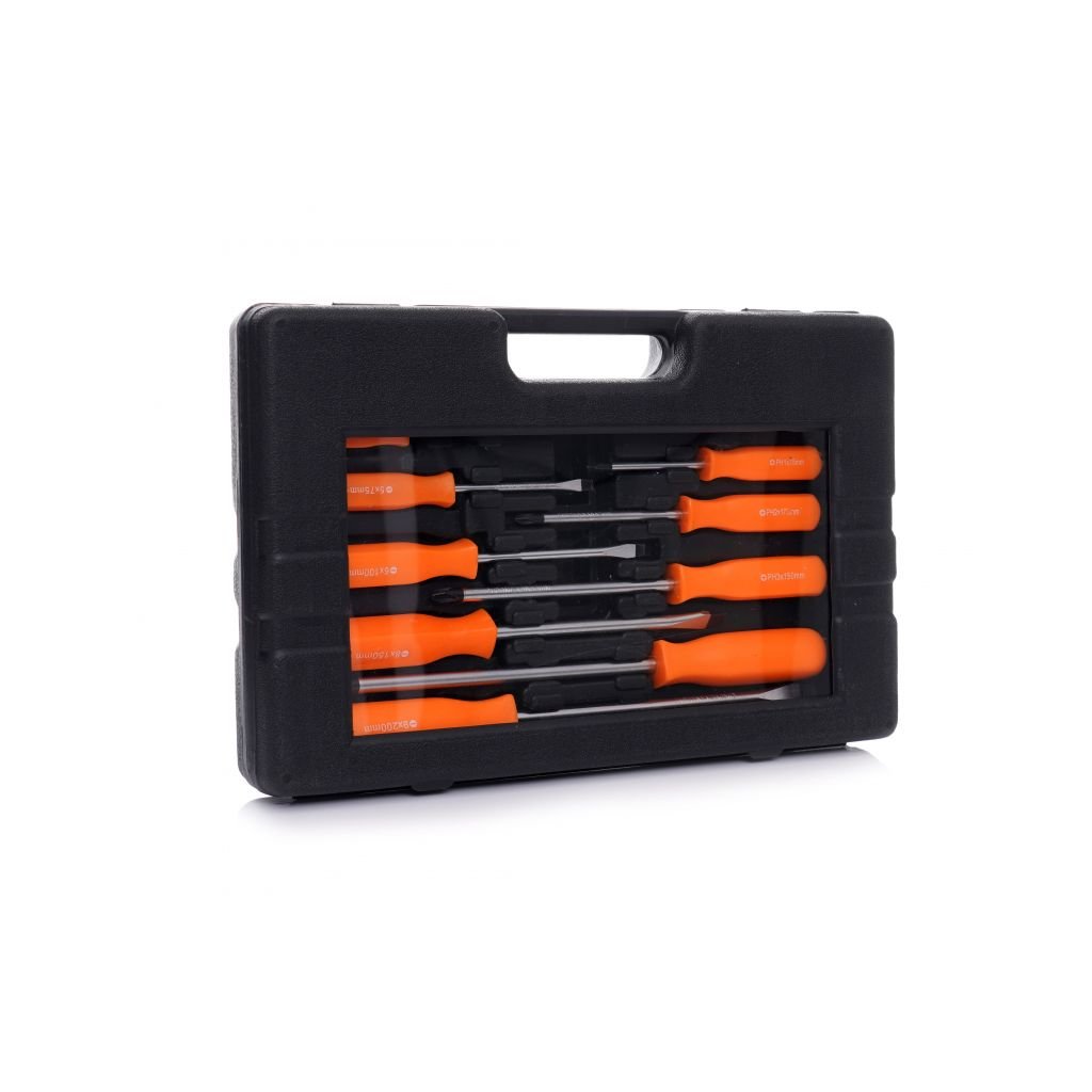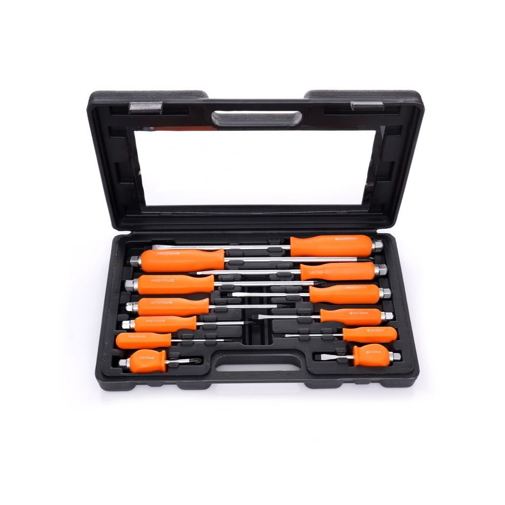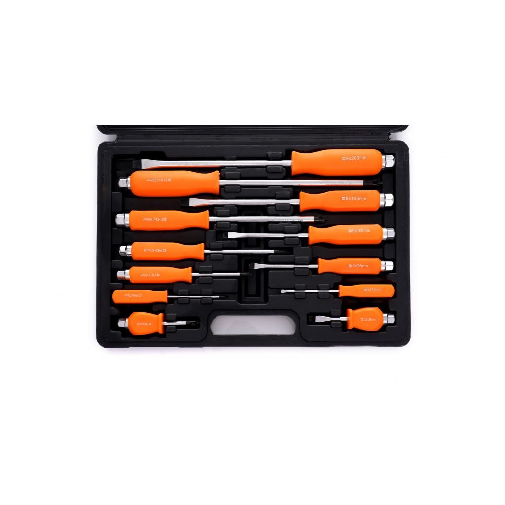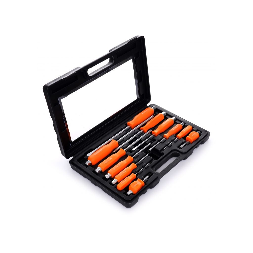 Kraft&Dele KD10946 sada úderových šroubováků 12 ks od značky Kraft&Dele je určena pro profesionální použití v automobilovém a průmyslovém sektoru. Díky průchozímu dříku a zesíleným rukojetím umožňuje efektivní přenos síly při šroubování i podbíjení.