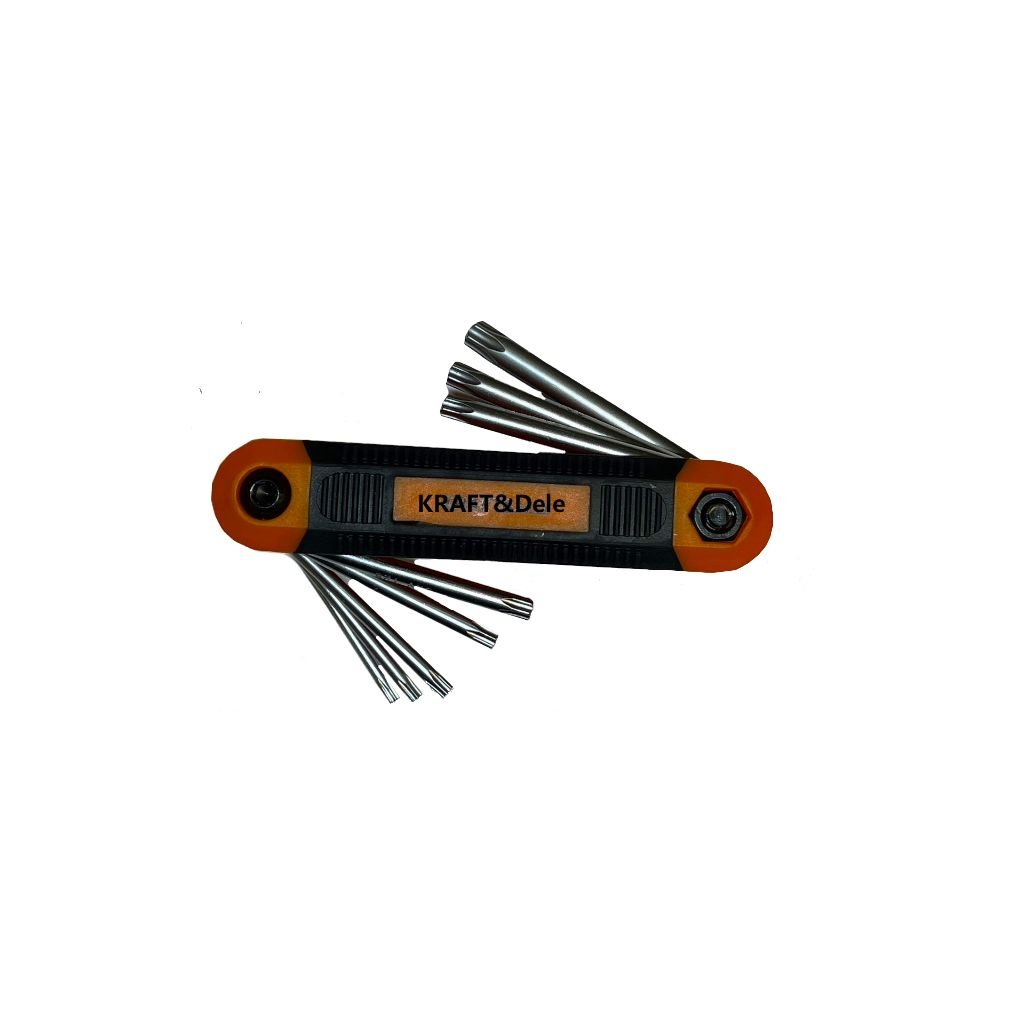 Sada skládacích imbusových klíčů Kraft & Dele má speciální hrot s otvorem uzpůsobený pro práci se šrouby TORX