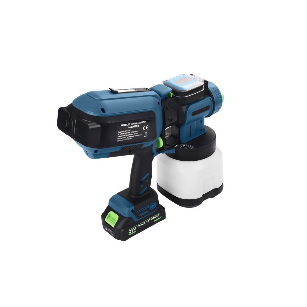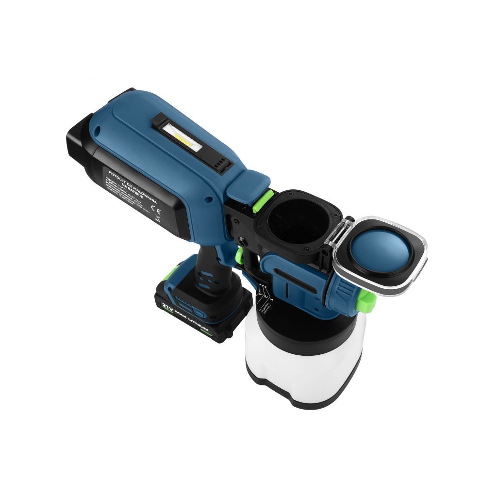 Výkonná a mobilní pistole pro rychlé malování í lakování nábytku, plotů, zábradlí, stěn i stropů bez kabelu. Odolná konstrukce pro profesionální i hobby použití, plynulá regulace průtoku a integrované LED světlo pro přesnější práci.