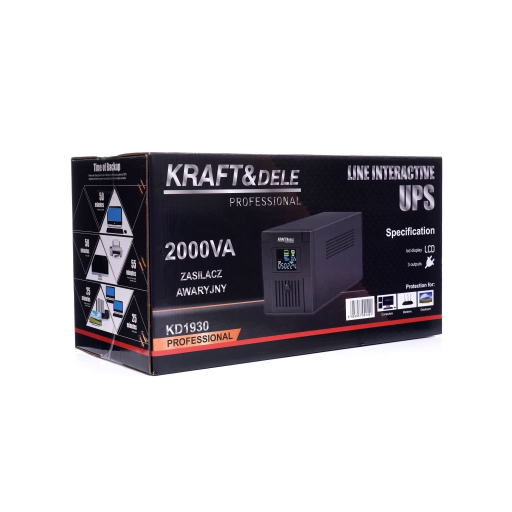 Záložní zdroj UPS Kraft&Dele se vyznačuje vysokou spolehlivostí a trvanlivostí; navíc disponuje přehledným LCD displejem