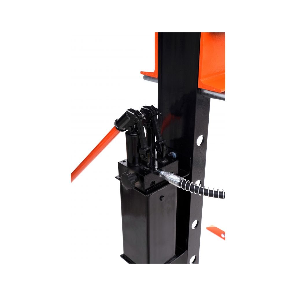 Tlak 20 t se dosáhne ručním čerpáním pákou a uvolnění pístu probíhá automaticky po odšroubování ventilu na pohonu