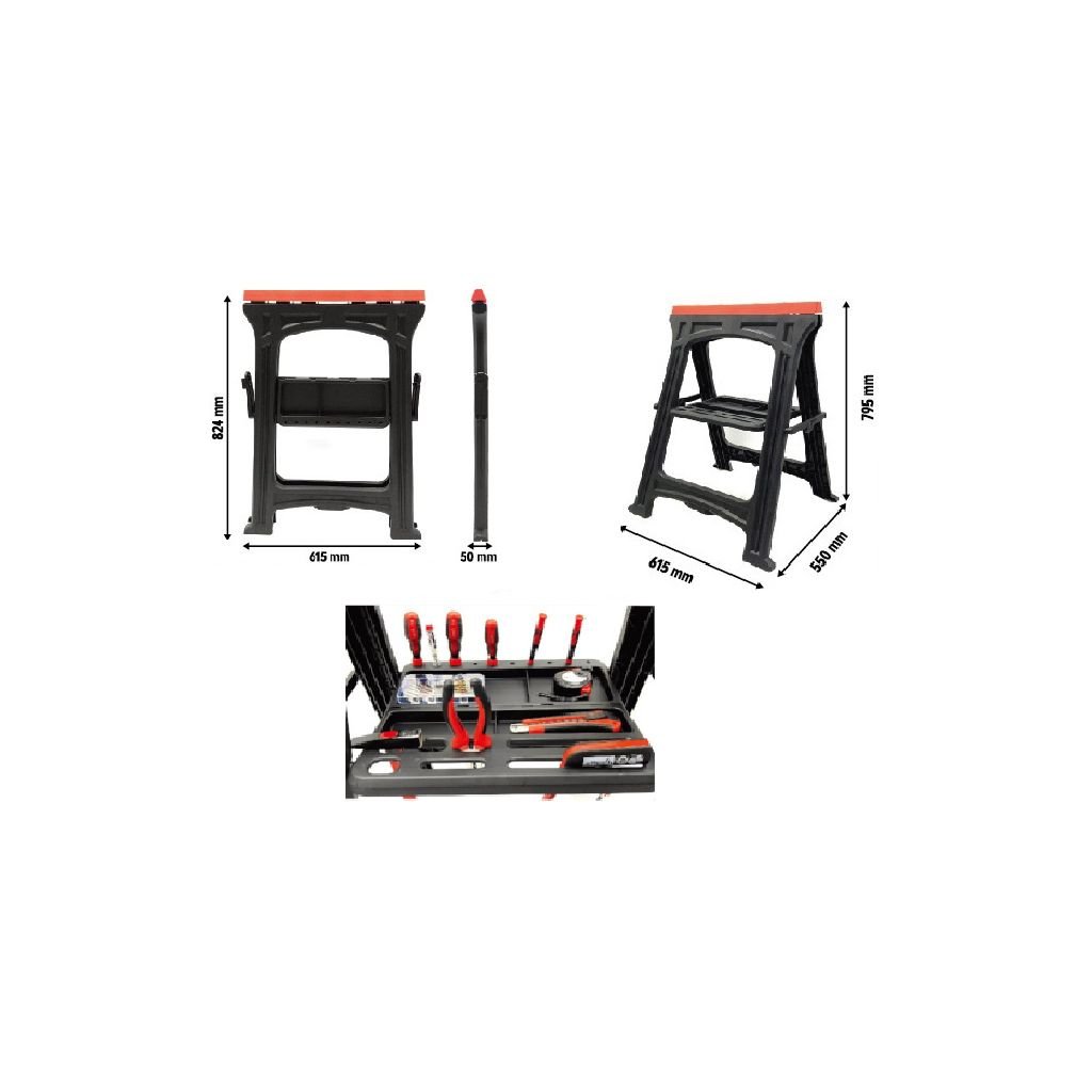 Vysoce kvalitní dílenský stojan, známý také jako kobylka nebo koza značky Kraft & Dele Vám výrazně usnadní práci v dílně a na stavbě