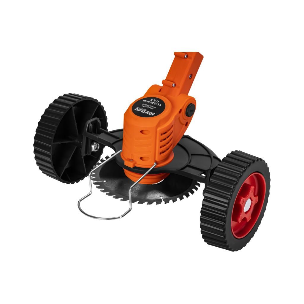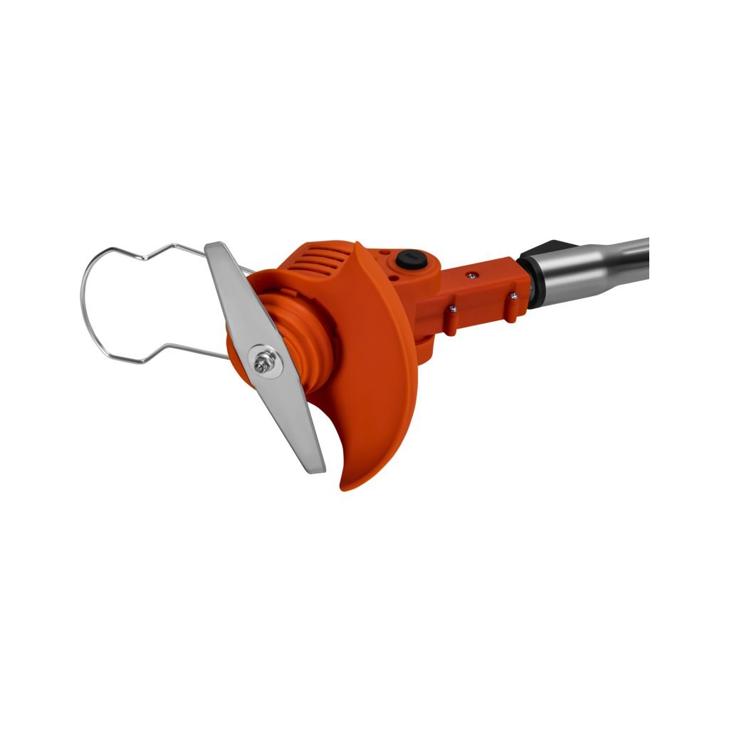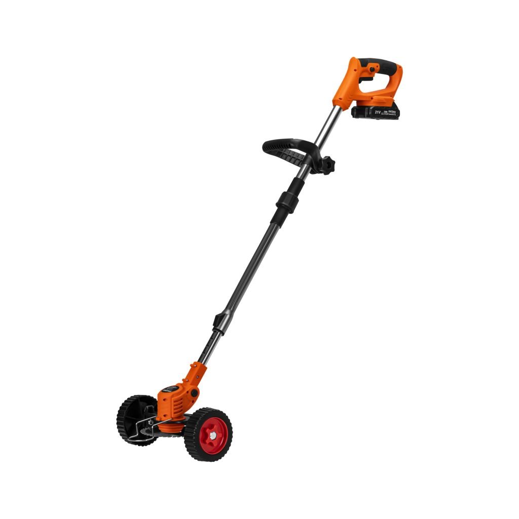 Univerzální aku podkasávač pro přesné sečení trávy a plevelů na těžko přístupných místech. Napájení 21 V bez kabelů, 2 baterie 2,0 Ah a rychlá nabíječka pro delší práci bez přerušení. Teleskopická regulace délky, nastavení úhlu hlavy a vodicí kolečka zvyšují komfort i přesnost. Výměnné nástroje (struna, plastové/kovové nože, kotouč) rozšiřují možnosti použití. Ochranný kryt zvyšuje bezpečnost při práci u zdí a obrub.