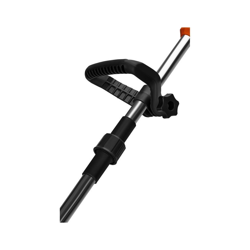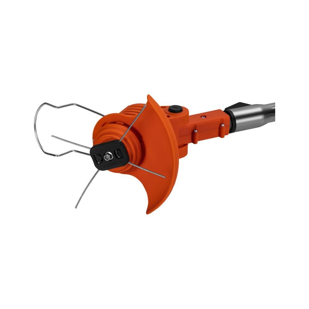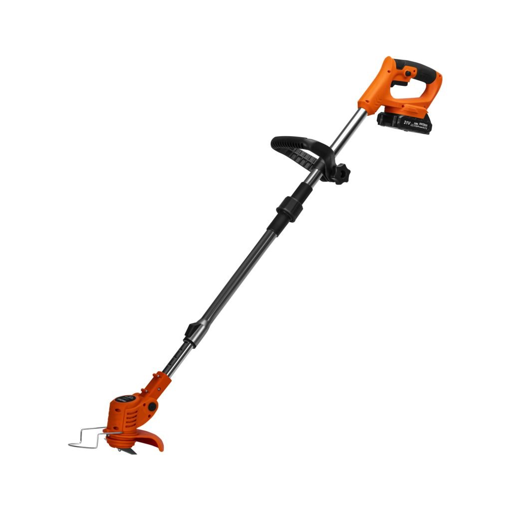 Univerzální aku podkasávač pro přesné sečení trávy a plevelů na těžko přístupných místech. Napájení 21 V bez kabelů, 2 baterie 2,0 Ah a rychlá nabíječka pro delší práci bez přerušení. Teleskopická regulace délky, nastavení úhlu hlavy a vodicí kolečka zvyšují komfort i přesnost. Výměnné nástroje (struna, plastové/kovové nože, kotouč) rozšiřují možnosti použití. Ochranný kryt zvyšuje bezpečnost při práci u zdí a obrub.