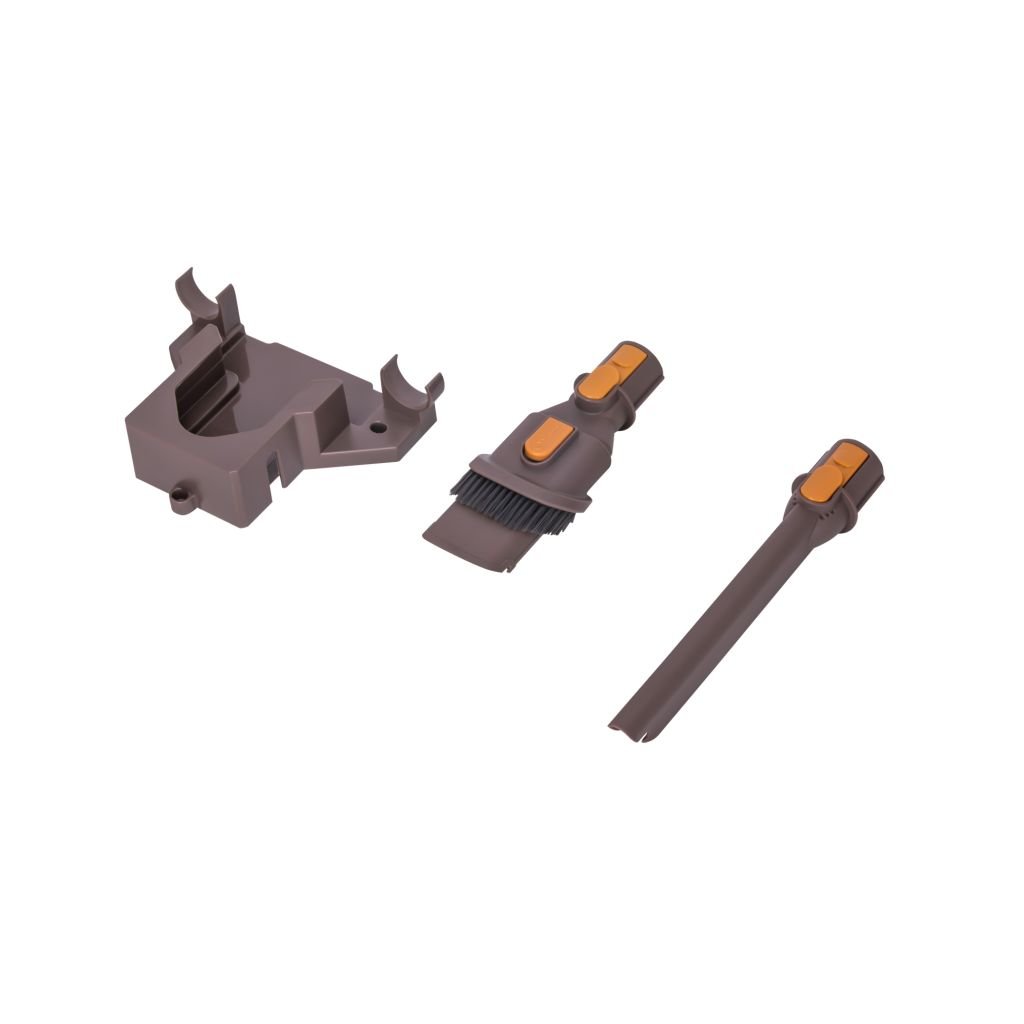 Přehledný LED panel zobrazuje zvolenou rychlost, stav baterie a kontrolku ucpání kartáče. Omyvatelný HEPA filtr zachytí jemný prach, zatímco nástěnný držák zajistí elegantní uložení a snadnou dostupnost. V balení najdete také praktické příslušenství pro čištění spár i čalounění.