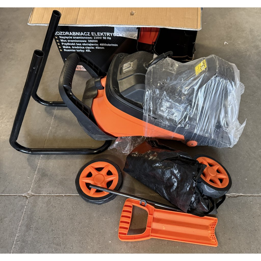 - Výkon: 3500 W, vhodný pro efektivní zpracování větví a dřevního odpadu.