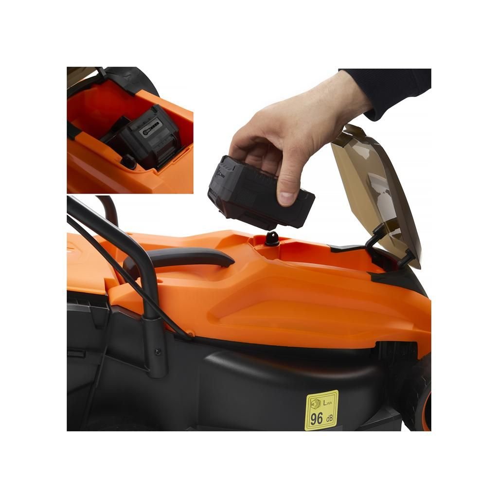 Kompaktní a lehká akumulátorová sekačka s napájením 20 V a baterií 6,0 Ah. Plastové tělo snižuje hmotnost a usnadňuje manévrování, malé rozměry pomáhají dostat se do hůře přístupných míst. Koš na trávu o objemu 30 l s madlem pro snadné přenášení.