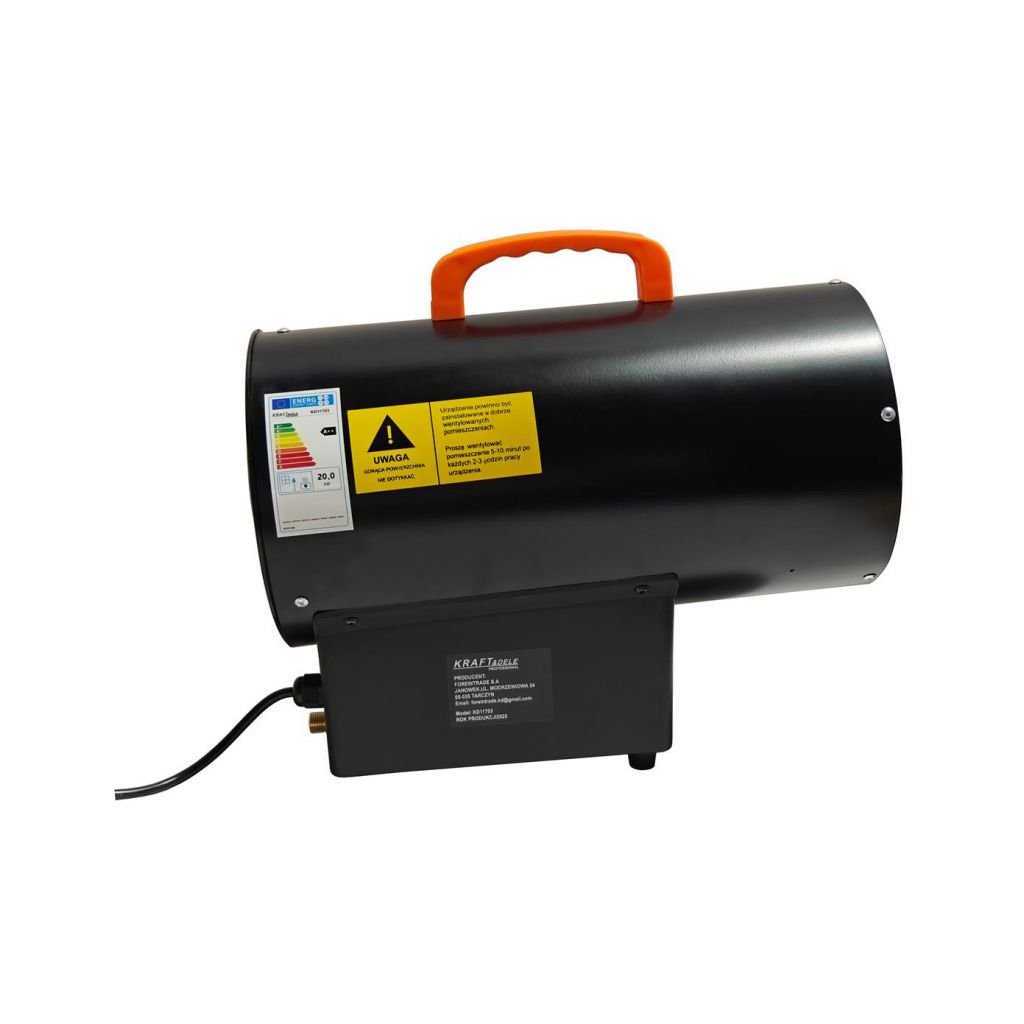 Plynový ohřívač Kraft & Dele model KD11703 o výkonu 20 KW na plyn propan-butan (LPG). Plynové ohřívače značky Kraft&Dele jsou ve svém cenovém segmentu jedním z nejlepších přístrojů na trhu. Jejich vysokou účinnost s maximální úsporou paliva (plynu) zajišťuje speciálně navržená spalovací komora.