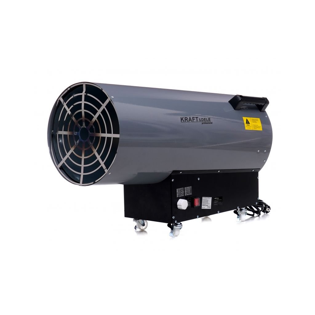 Plynový ohřívač Kraft & Dele model KD11707 o výkonu 100 KW na plyn propan-butan (LPG). Ohřívač má vestavěný termostat s regulací teploty. Ohřívač pracuje automaticky v závislosti na nastavení teploty.