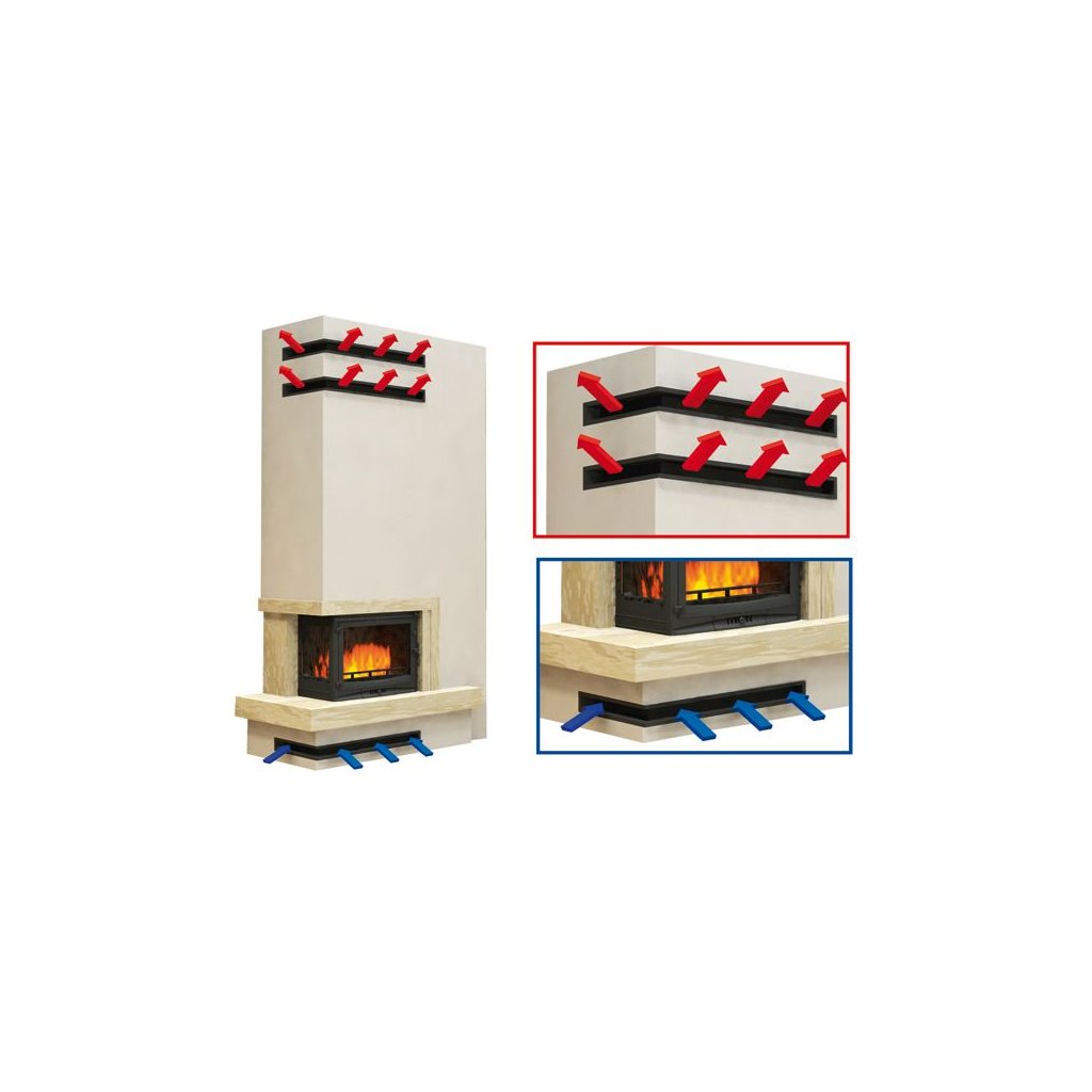 Otevřená krbová mřížka je navržena pro vyústění teplého vzduchu z krbu do obývací místnosti. Stejně tak lze také použít jako přívod vzduchu pod krbovou vložku. Při montáži jako přívod vzduchu mřížku montujeme opačně než v případě montáže pro vyústění teplého vzduchu.