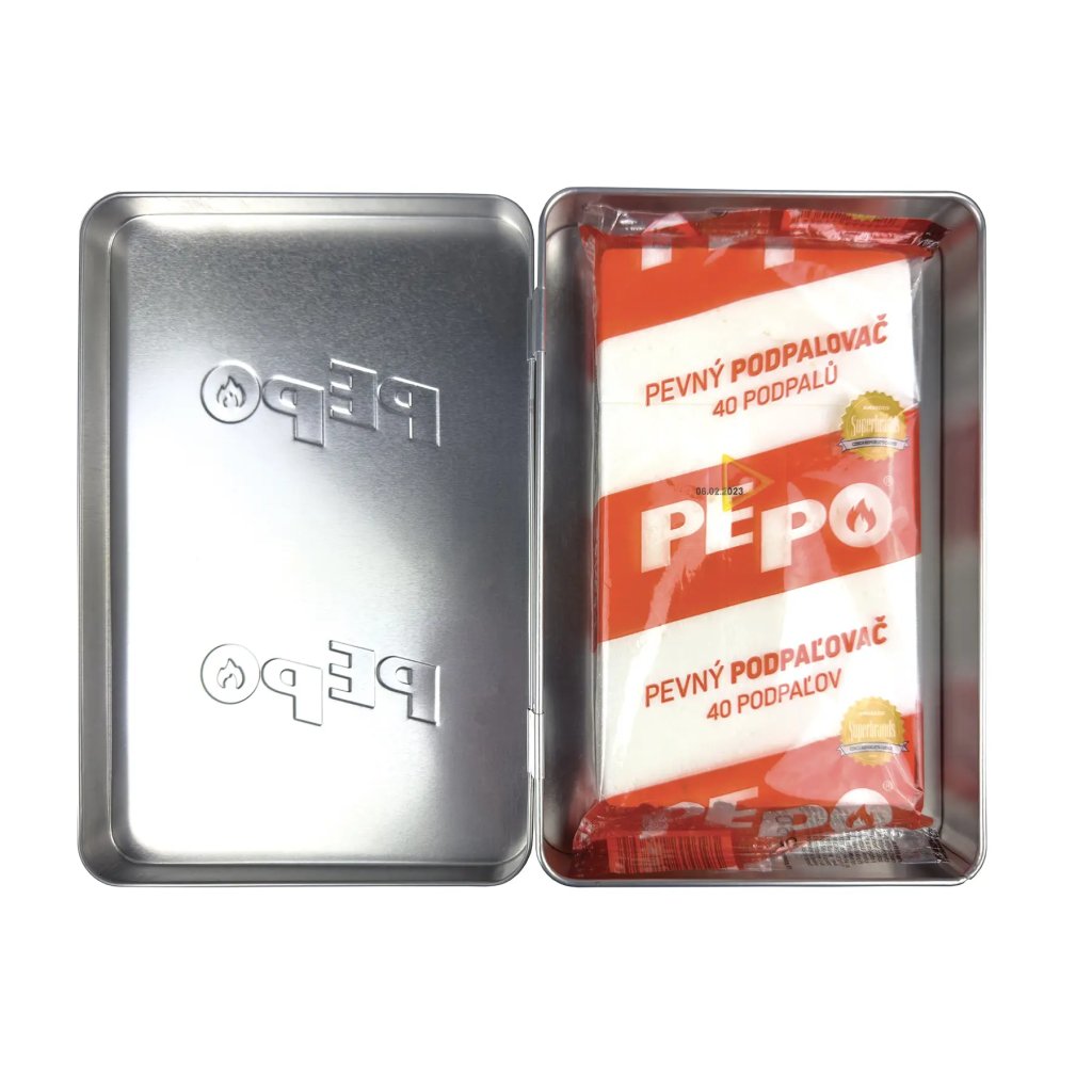 PE-PO plechová krabička slouží k bezpečnému uložení podpalovače. Tato limitovaná edice k 60. výročí založení značky PE-PO obsahuje 1 ks PE-PO pevného podpalovače - fólie.