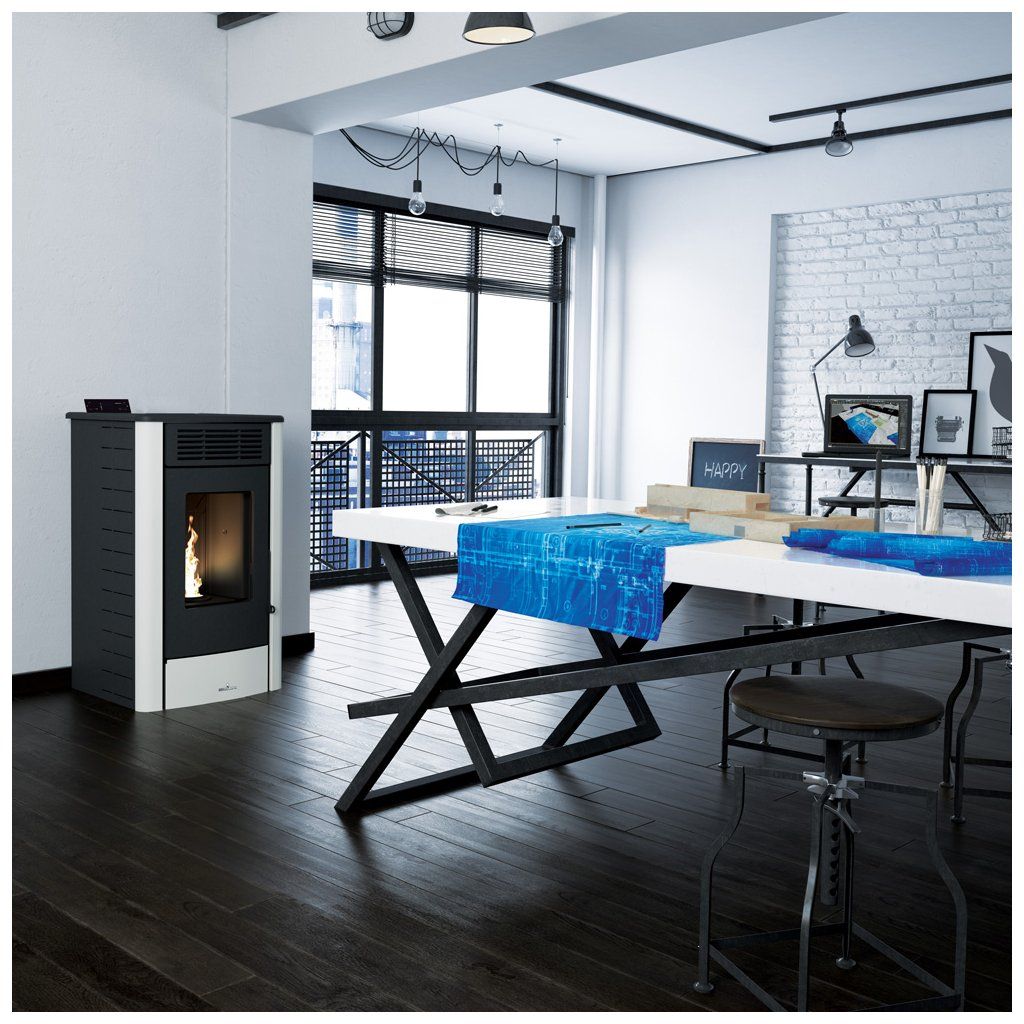 Peletová kamna s jmenovitým výkonem 8 kW vytopí až 200 m3. Zásobník 16 kg poskytne 8,4–18 h autonomie při účinnosti 90–93 %. Confortek System (Auto, Soft-Night, Manual-Smart a Energy) umožňuje tichý chod včetně úplného odpojení turbíny v režimech Night a Smart. ICS zajišťuje nezávislé ovládání volitelného kanálování. Robustní konstrukce s litinovými dvířky, horní deskou, hořákem, interiérem i předním roštem a litinovým výměníkem-akumulátorem.