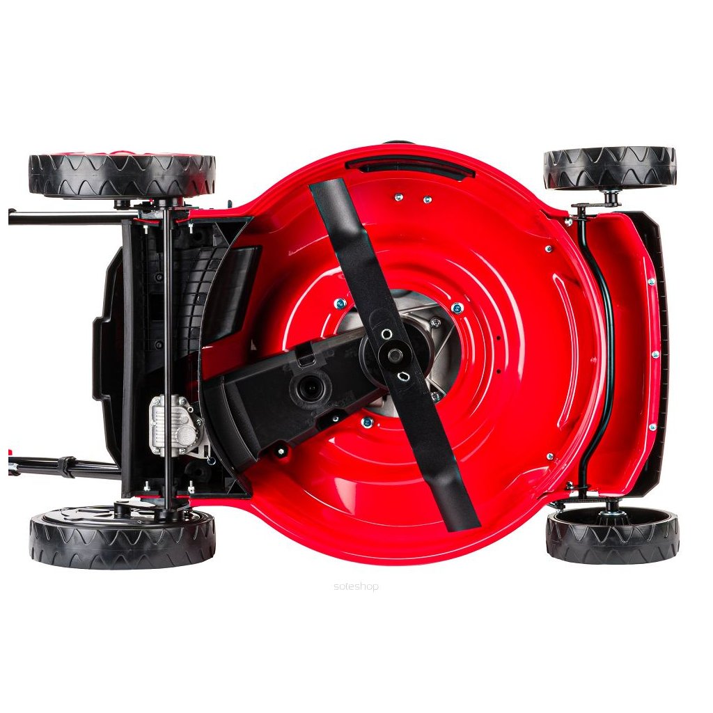- Má dlouhý žací nůž o šířce 51 cm, který zrychluje pracovní tempo zejména na menších a středně velkých pozemcích. Poměrně lehká konstrukce usnadňuje manévrování i na těžko přístupných místech.