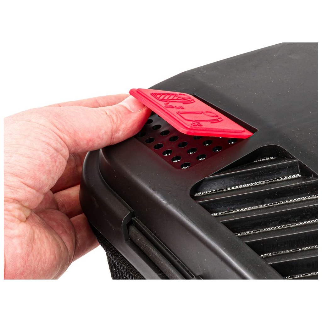 - Pomocí kvalitně vyrobených vodítek je zavěšení koše na tělo sekačky velmi jednoduché a nevyžaduje kombinace, jako je tomu u mnoha sekaček tohoto typu.