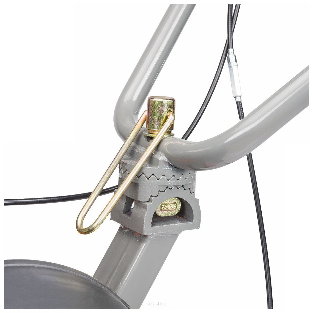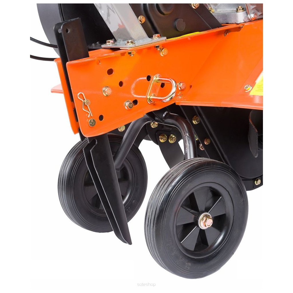 - Kultivátor má transportní kolečka pro snadný pohyb a nastavitelnou výšku ovládací páky a pracovní hloubku. Silniční kola lze nastavit ve 3 úrovních.