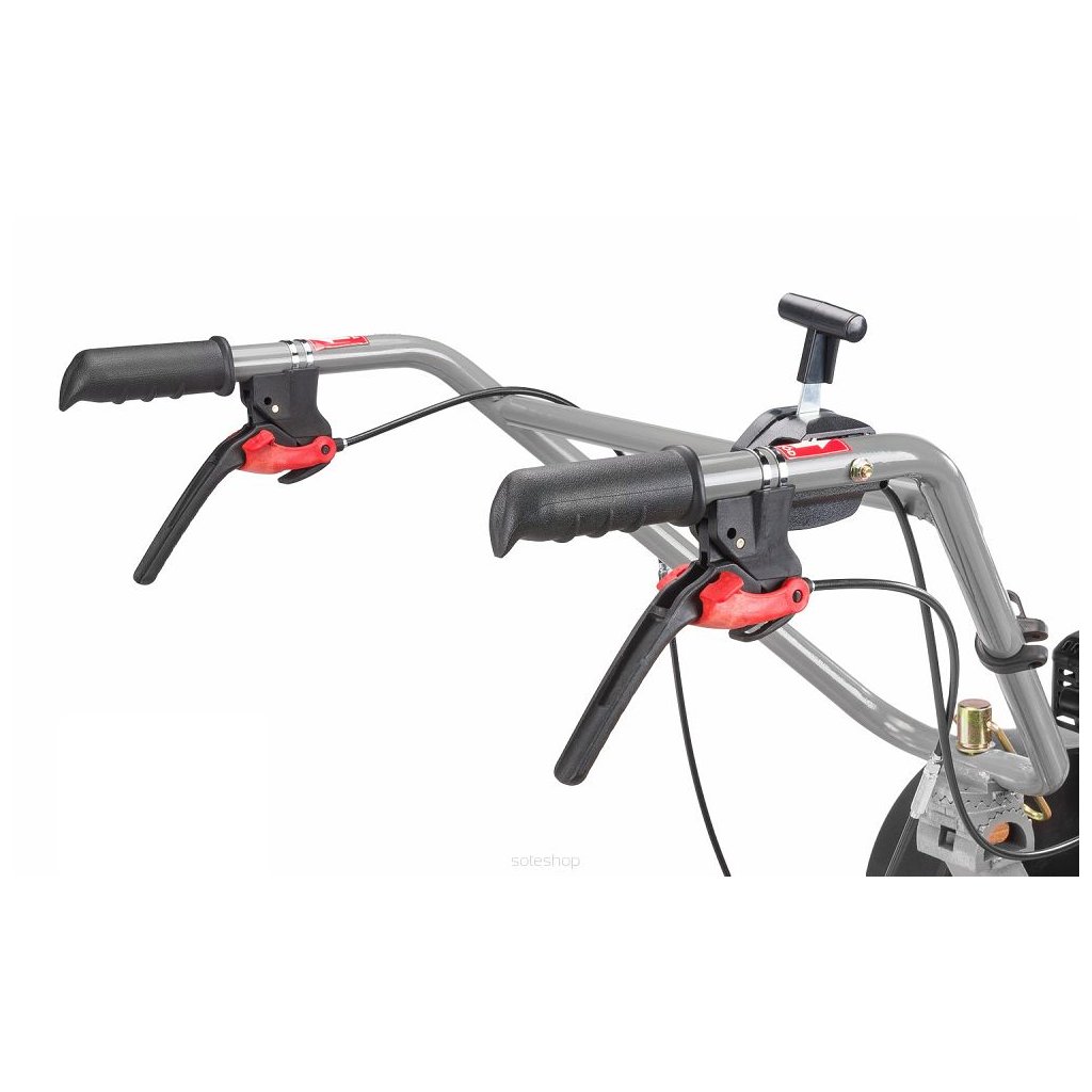 - Na rukojetích jsou páčky pro zapnutí pohonu vpřed a vzad a páka pro nastavení plynu motoru.