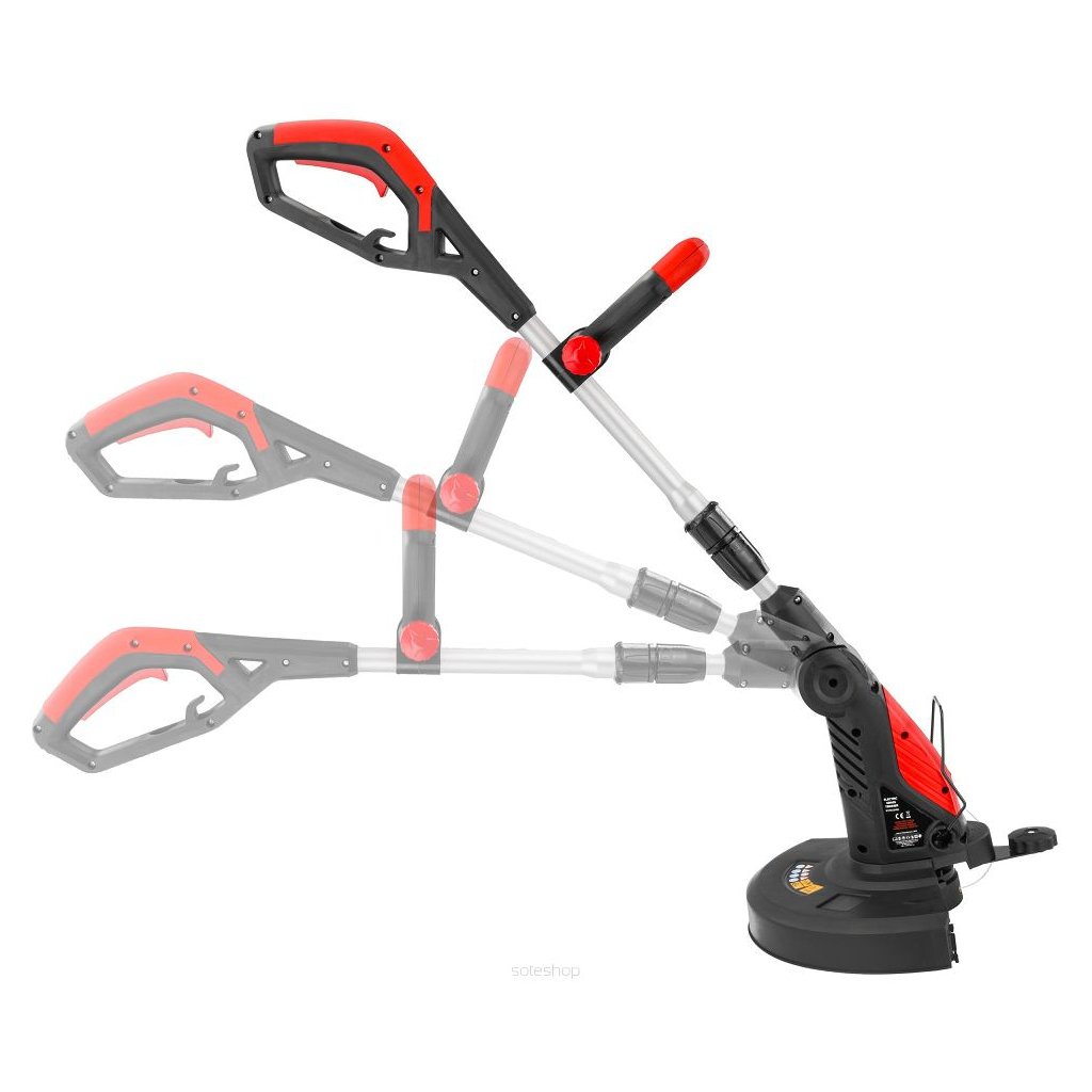 - Kromě nastavení rukojeti má elektrický vyžínač také funkci otáčení celé rukojeti k hlavě s motorem.