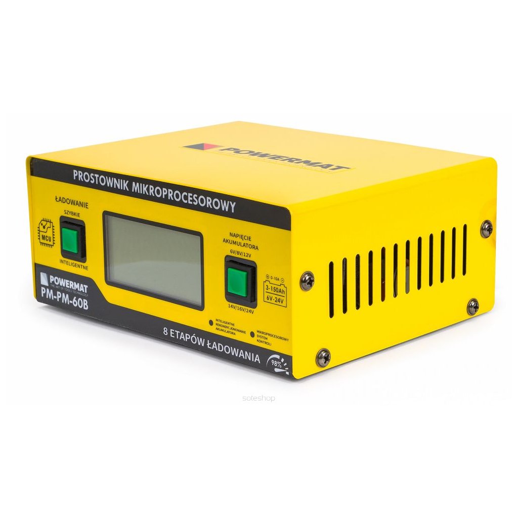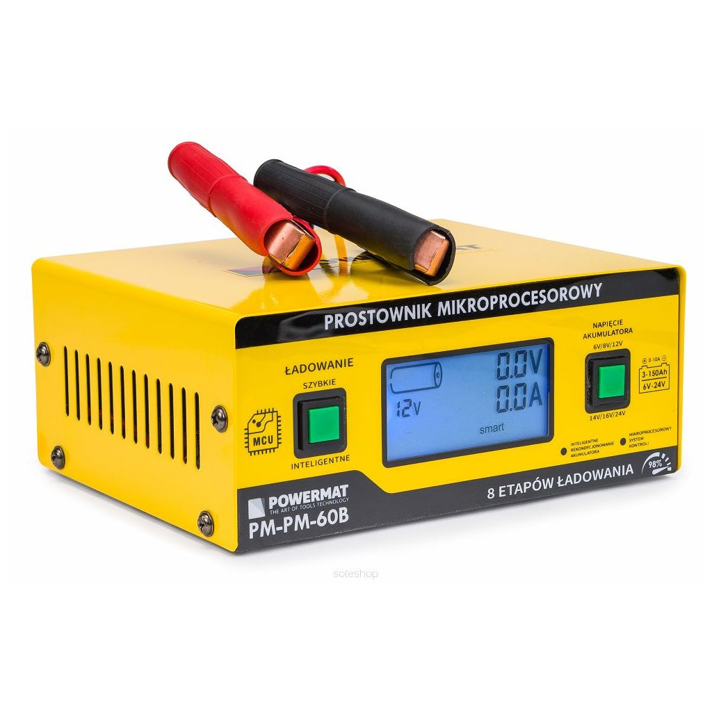 - Nabíječka PM-PM-60B od společnosti Powermat je první nabíječkou baterií na trhu s mikroprocesorovým řídicím systémem v technologii PWM s možností nabíjení 6 V a 24 V baterií, který inteligentně a cíleně volí správné parametry, díky čemuž se vaše vybitá a zanedbaná baterie regeneruje.