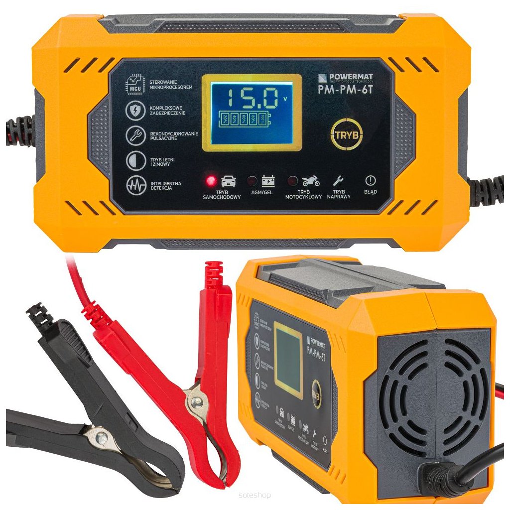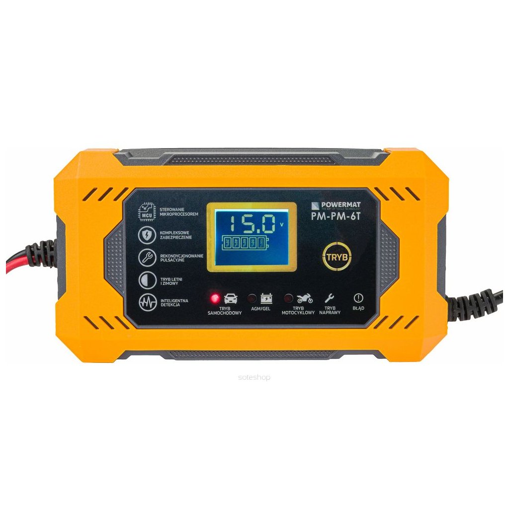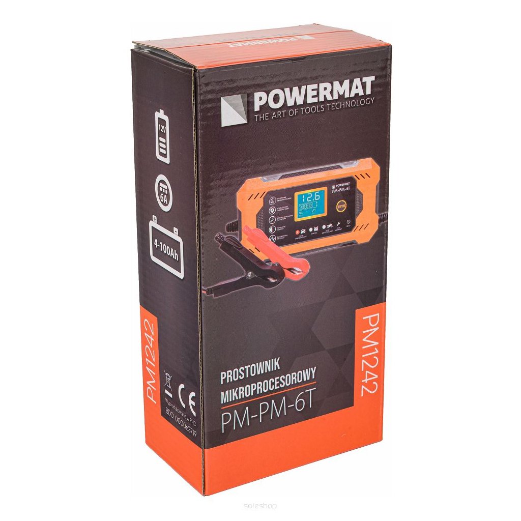 Vysoce kvalitní, automatická a přesná mikroprocesorová nabíječka baterií Powermat je ideální pro profesionální autoservisy a dílny, stejně jako v domácích garážích. Zařízení lze nabíjet napětím 12 V.