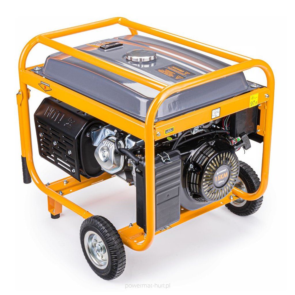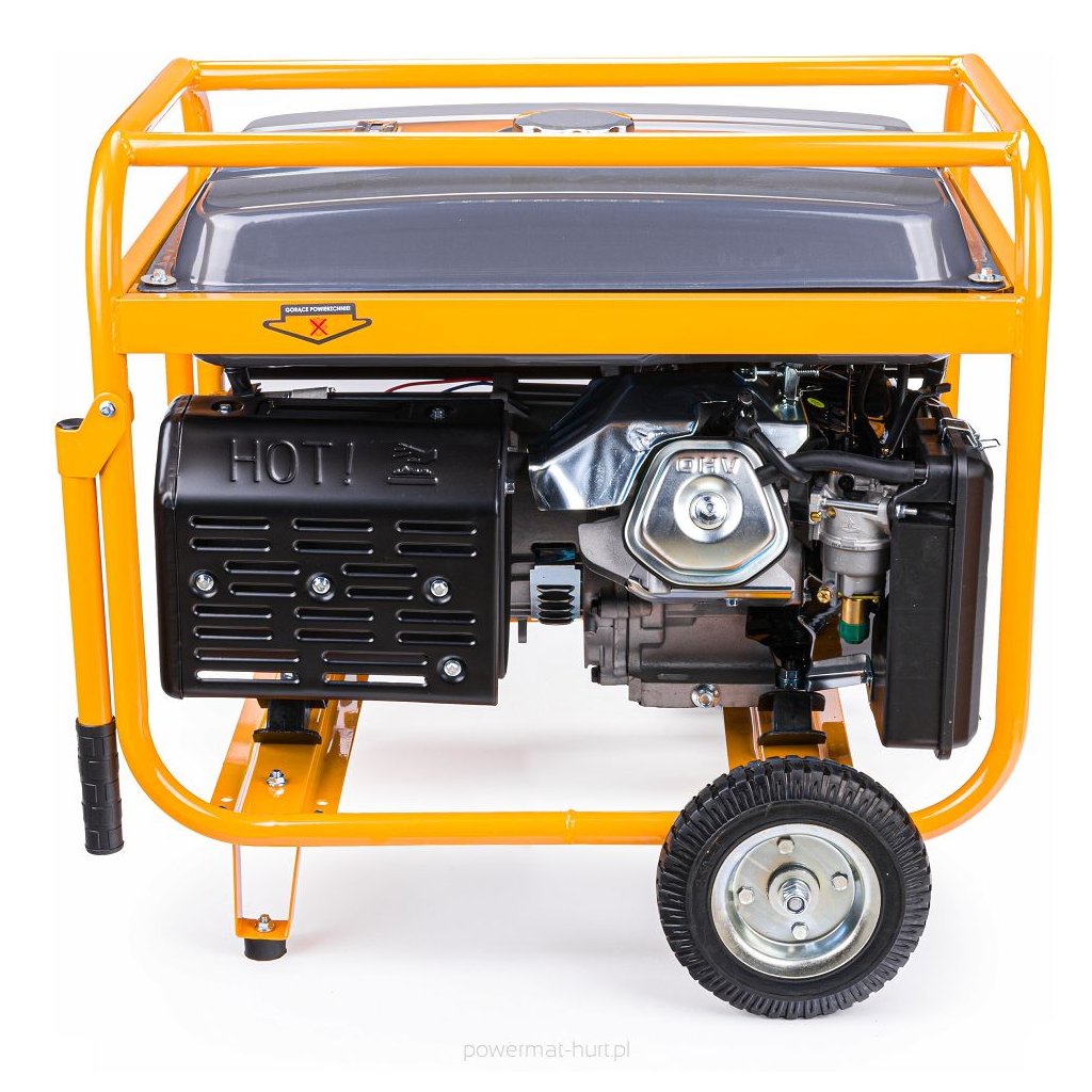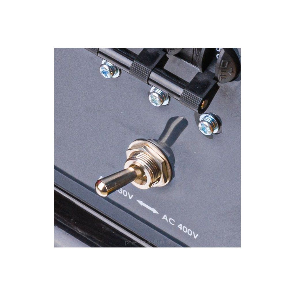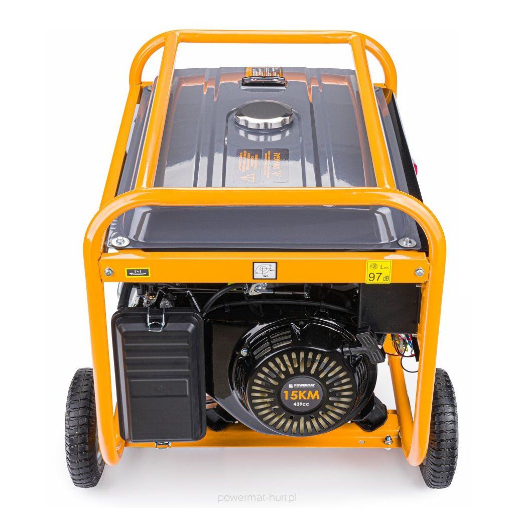 Generátor generuje elektrický proud s napětím 230 V (1 zásuvka) a 400 V (1 zásuvka). Perfektní řešení pro nedostatek elektřiny v terénu. Vybaveno voltmetrem a pojistkami. Generátor má snímač hladiny oleje, který automaticky vypne motor, pokud je jeho hladina příliš nízká. Spouštění generátoru - elektrického (klíčem) a ručně - kabelem. Jednotka používaná v řemeslech, stavbách na pozemcích a zahradách pro práci s elektrickým nářadím, čerpadly, osvětlením.