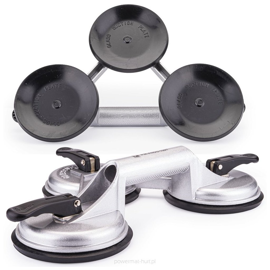 Víceúčelová rukojeť s přísavkou značky Powermat. Určeno pro manipulaci s různými prvky s hladkým povrchem, např. sklem, okny, autoskly, plechy, lamináty atd., jejichž hmotnost nepřesahuje 150 kg. Hliníkové tělo a gumová přísavka zajišťují bezpečnou a bezpečnou manipulaci se součástmi. Široká škála aplikací usnadní práci profesionálům i amatérům