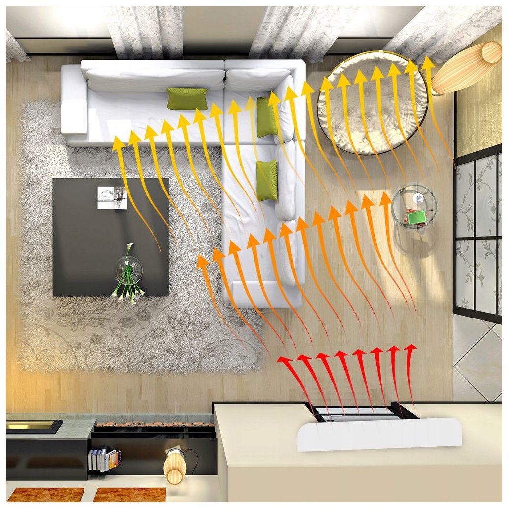 - Tři stupně výkonu: 0 / 1000 / 2000 W – topení i samotná ventilace podle potřeby