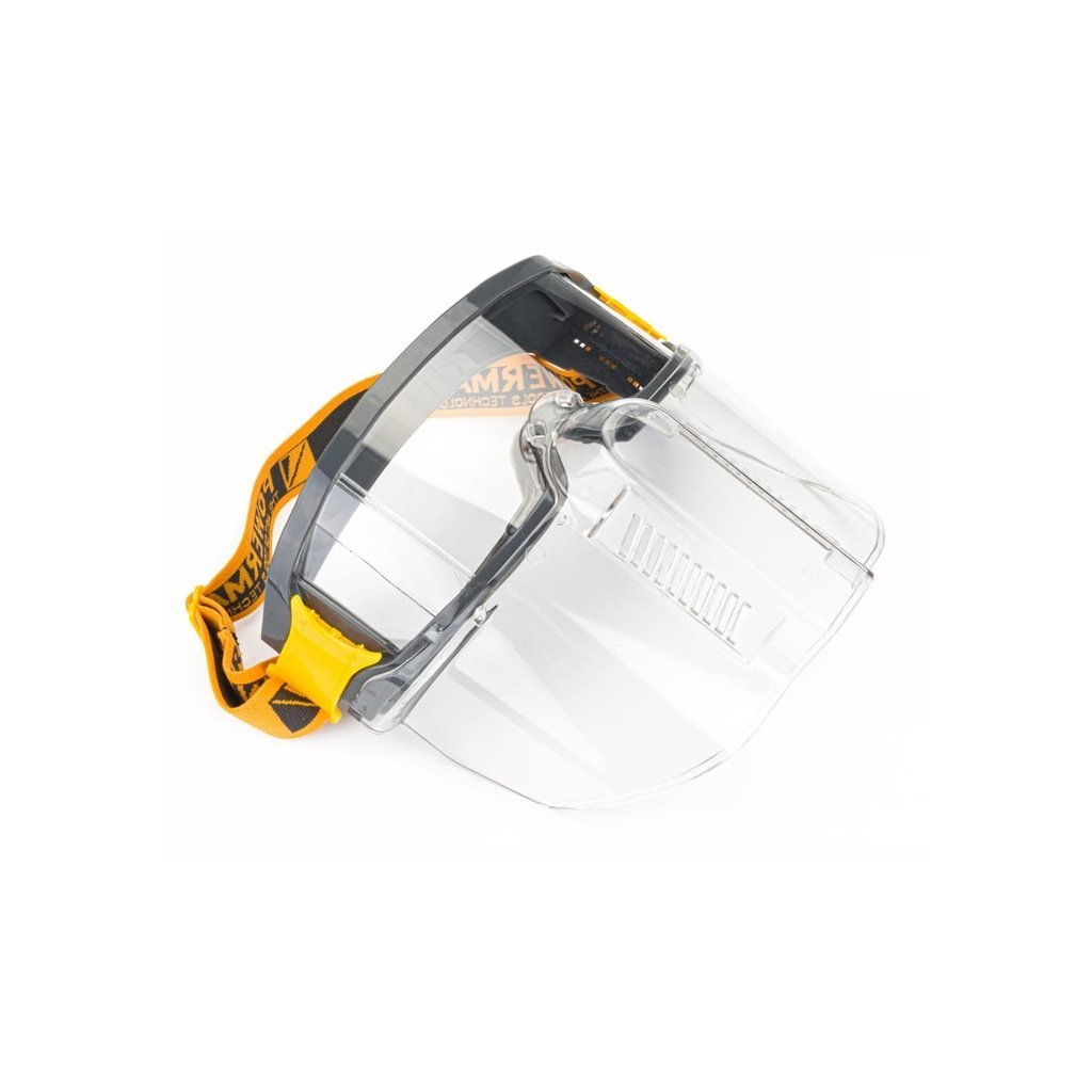 - Maximální ochrana: Chrání oči a obličej před mechanickými částicemi, prachem a chemickými látkami.