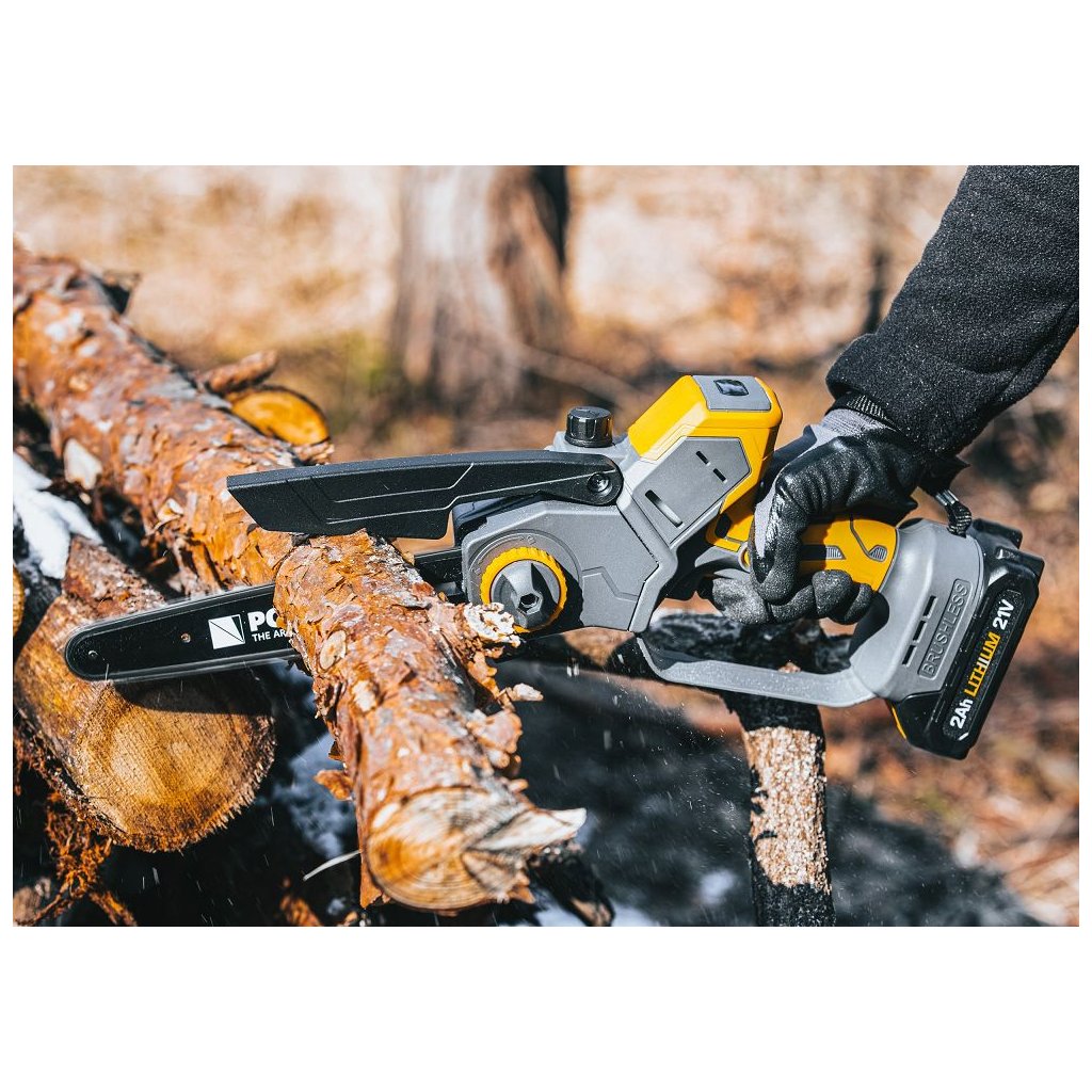 Lehká a obratná aku pila s bezuhlíkovým motorem, dvěma Li-ion bateriemi 2 Ah a lištou 8" pro rychlé a přesné řezání větví a menších kmenů. Rychlé napínání řetězu, LCD ukazatel stavu baterie a ochranné prvky pro bezpečnou a pohodlnou práci.
